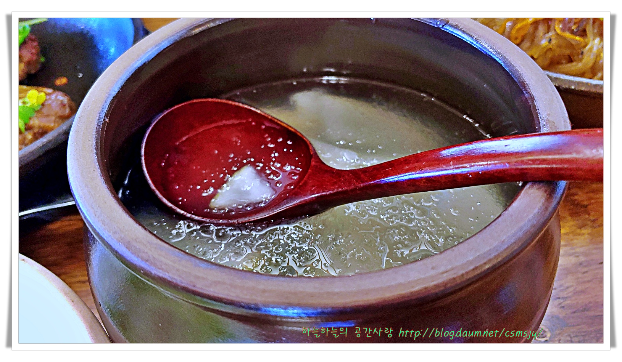 밥한공기 덜어내고 구수한 된장찌게 한 국자 퍼 담고 은은한 빛을 담은 놋숟가락으로