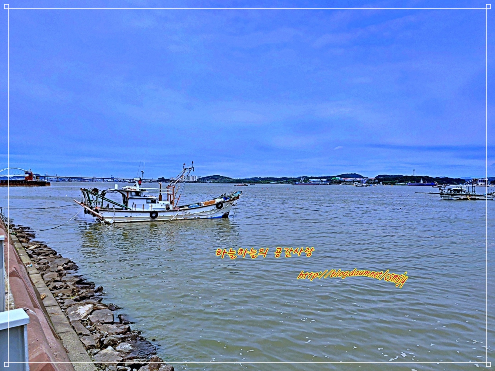 한가하게 어선이 쉼을 하고 있고 저 멀리로