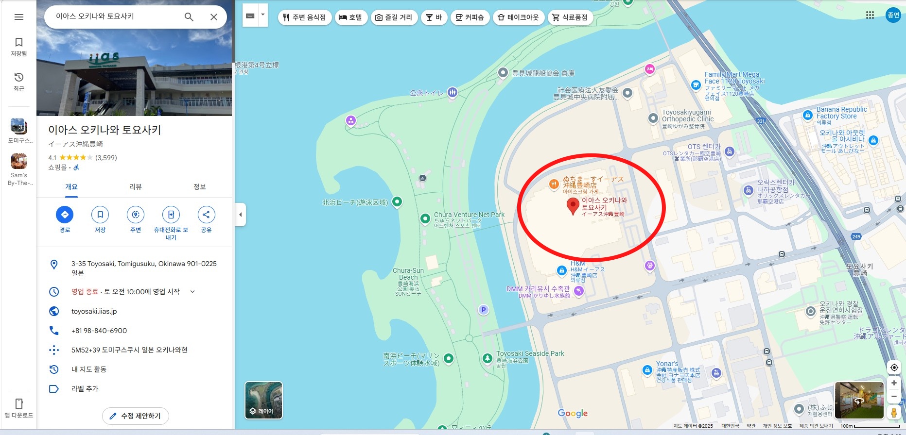 오키나와 섬 남단의 서쪽에 위치한 나하시의 이아스 쇼핑몰이에요.