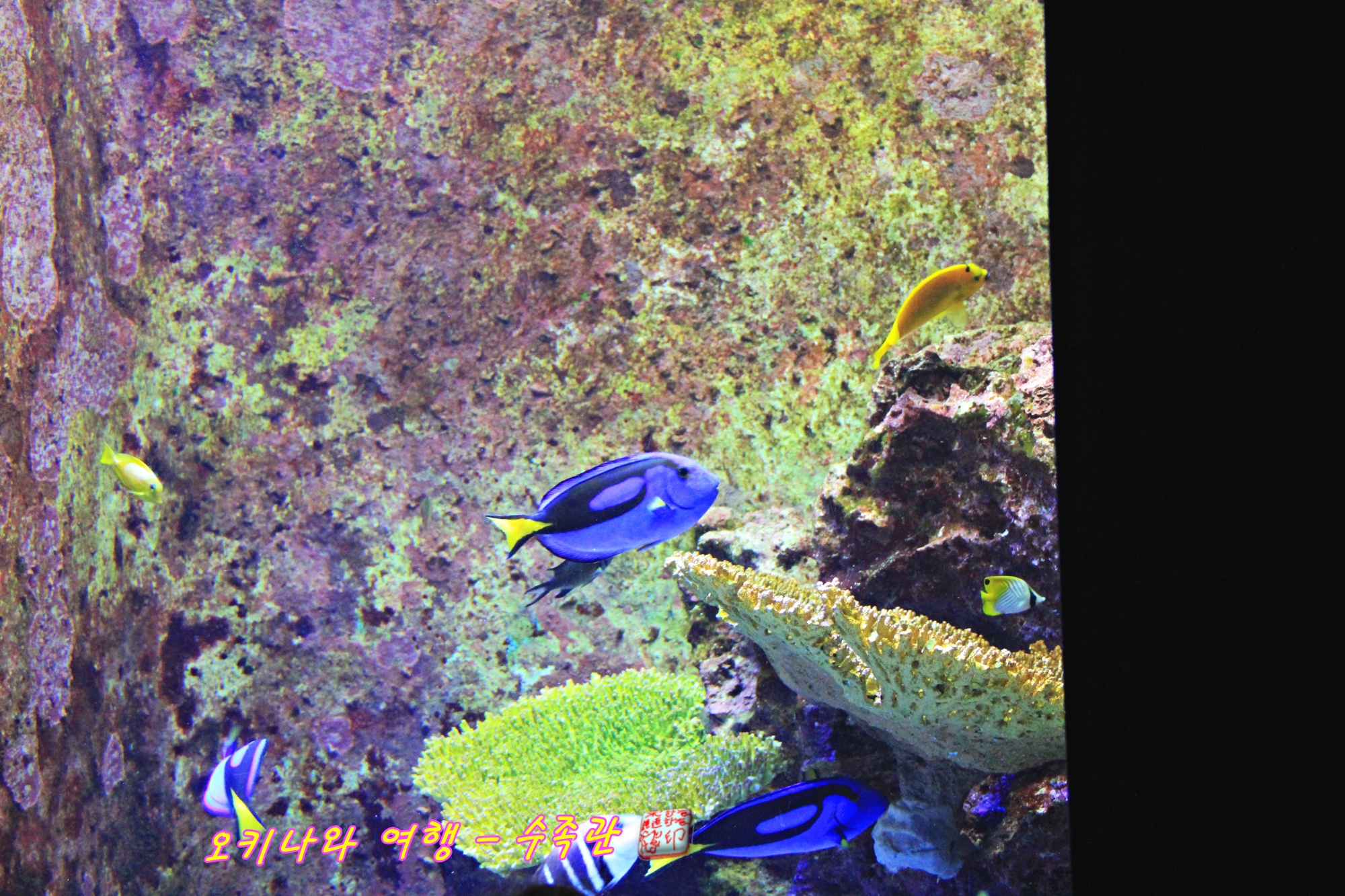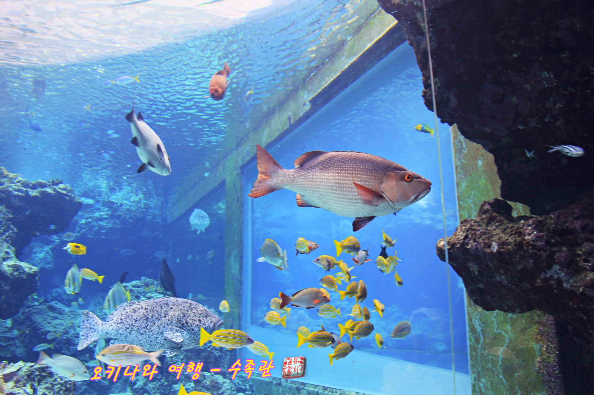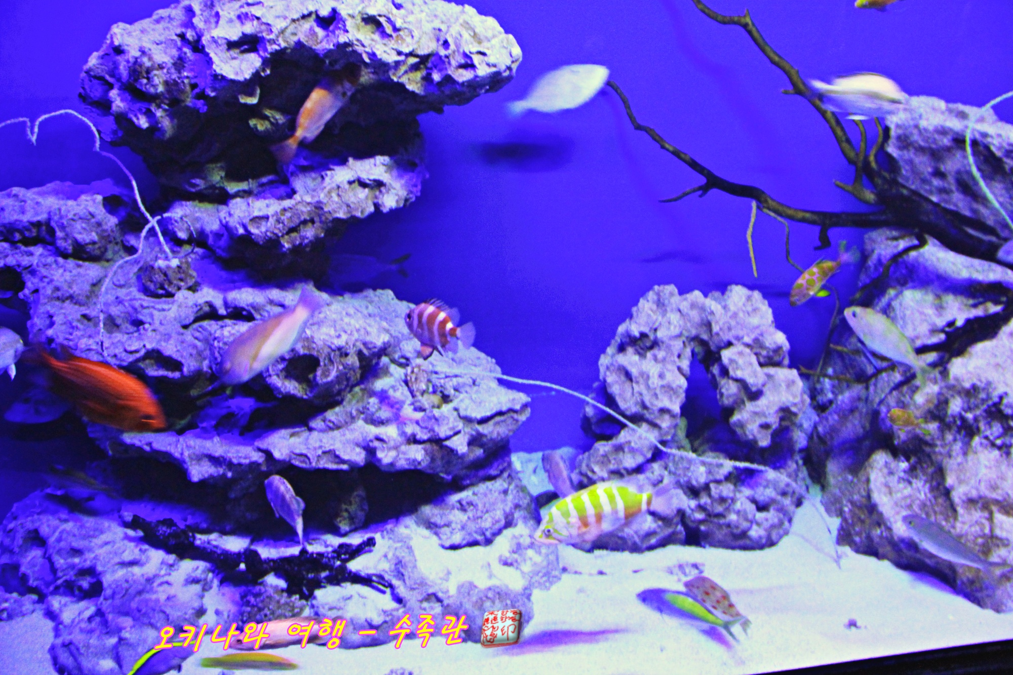 다양하 어류들이 어우러져 살고 있는 모습을 보여주는 추라우미 수족관입니다.