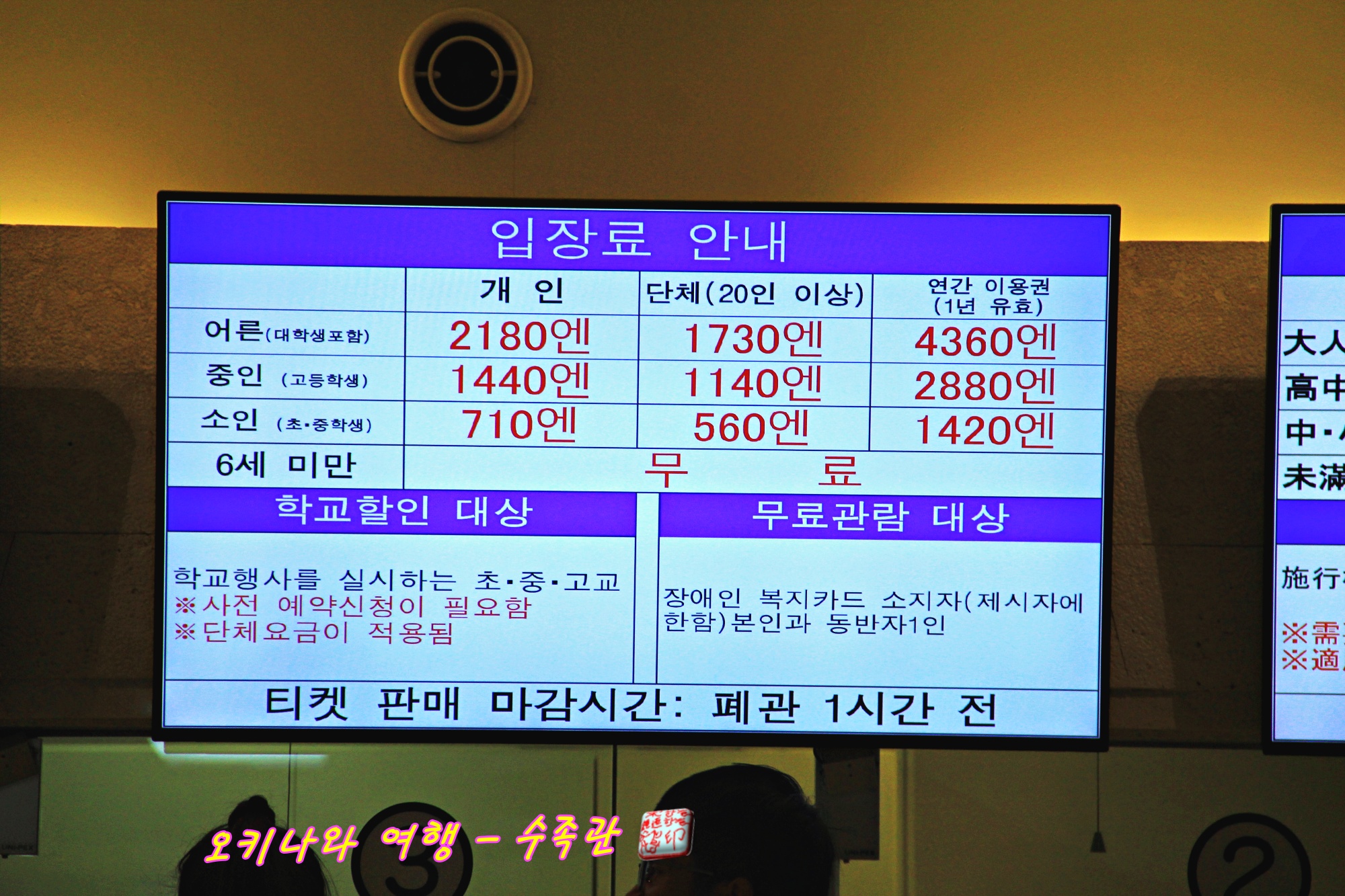 추라우미 수족관 입장료입니다.