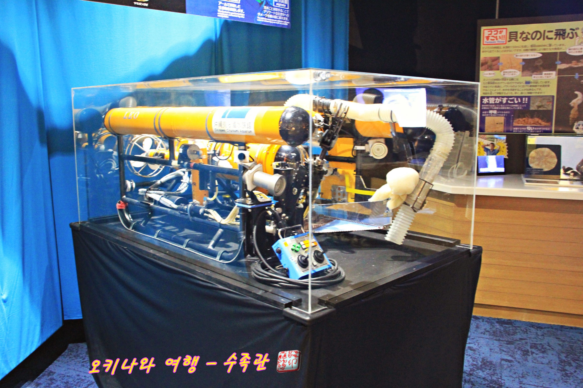 깊은 바닷속으로 들어가 여러 가지 조사를 하는 무인 잠수정도 전시되어 있는데