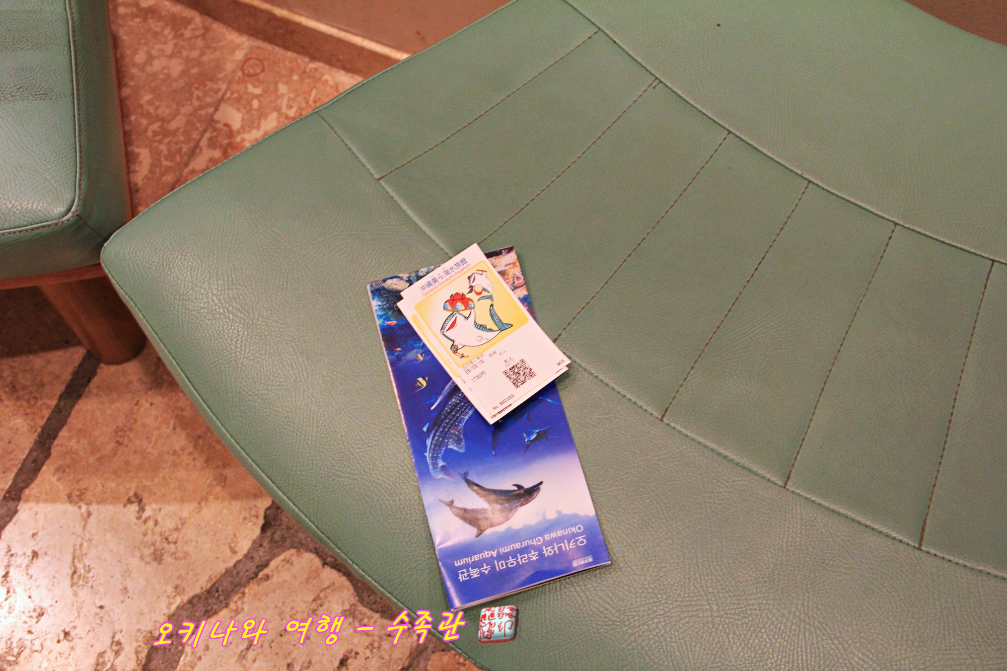 추라우미 수족관 입장권과 안내문을 챙깁니다.