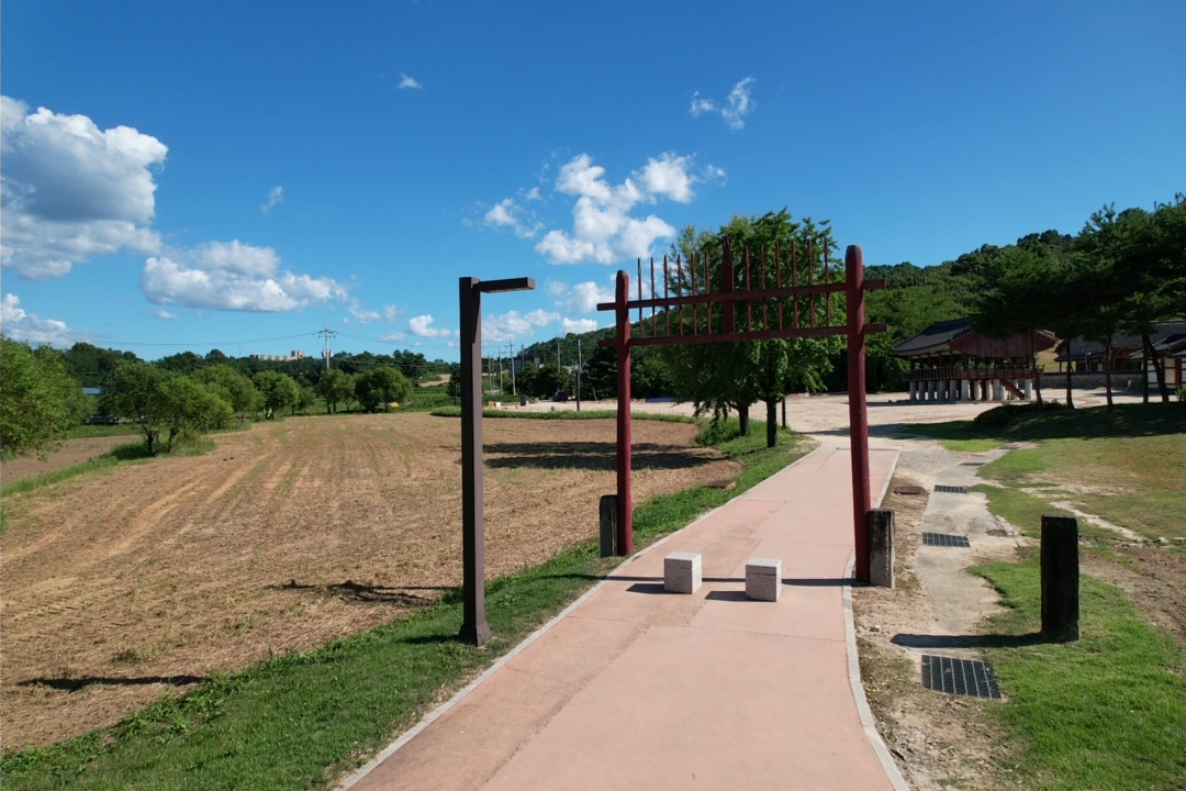 드론이 출발하는 돈암서원 홍살문. 여름 뙤약볕이 장난이 아닙니다.