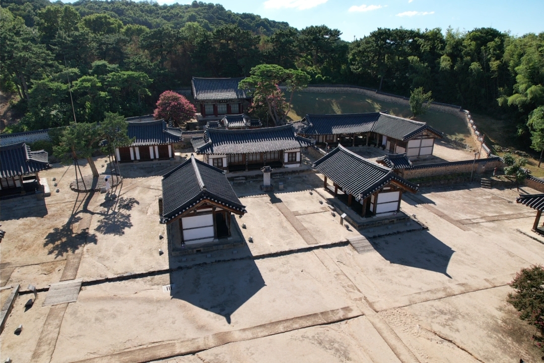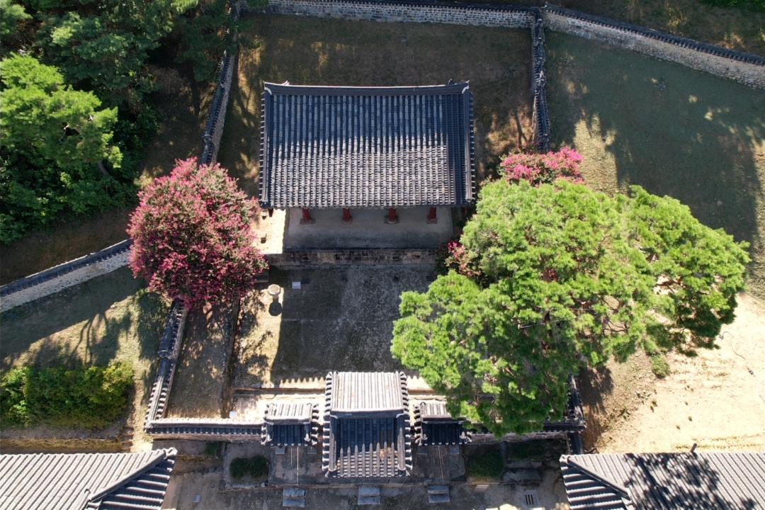 산앙루 지붕 위에서 내려 본 세계문화유산 돈암서원의 모습입니다.