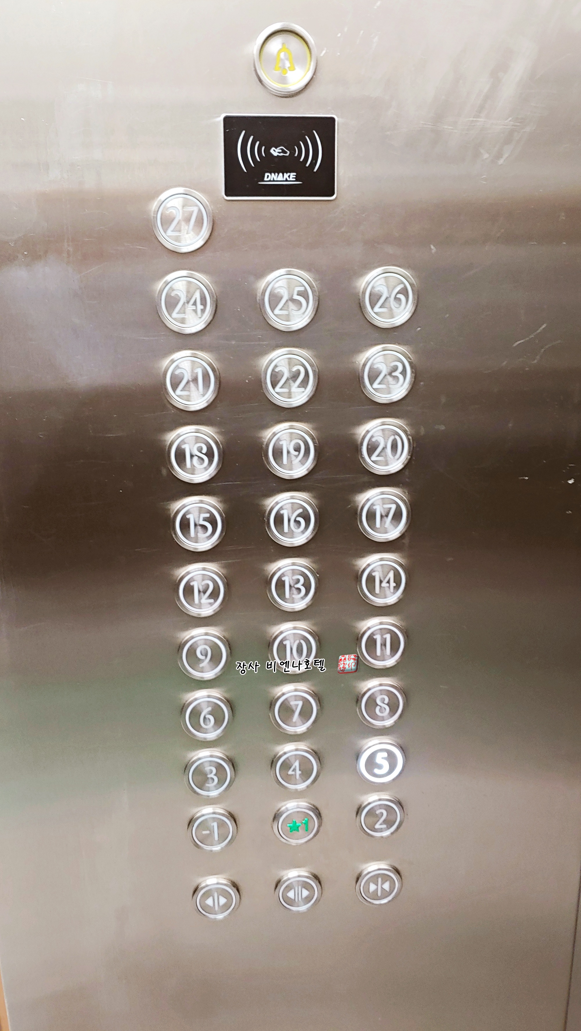 아침에 일어나 캐리어 끌고 식당을 내려가는 엘리베이터 안입니다.