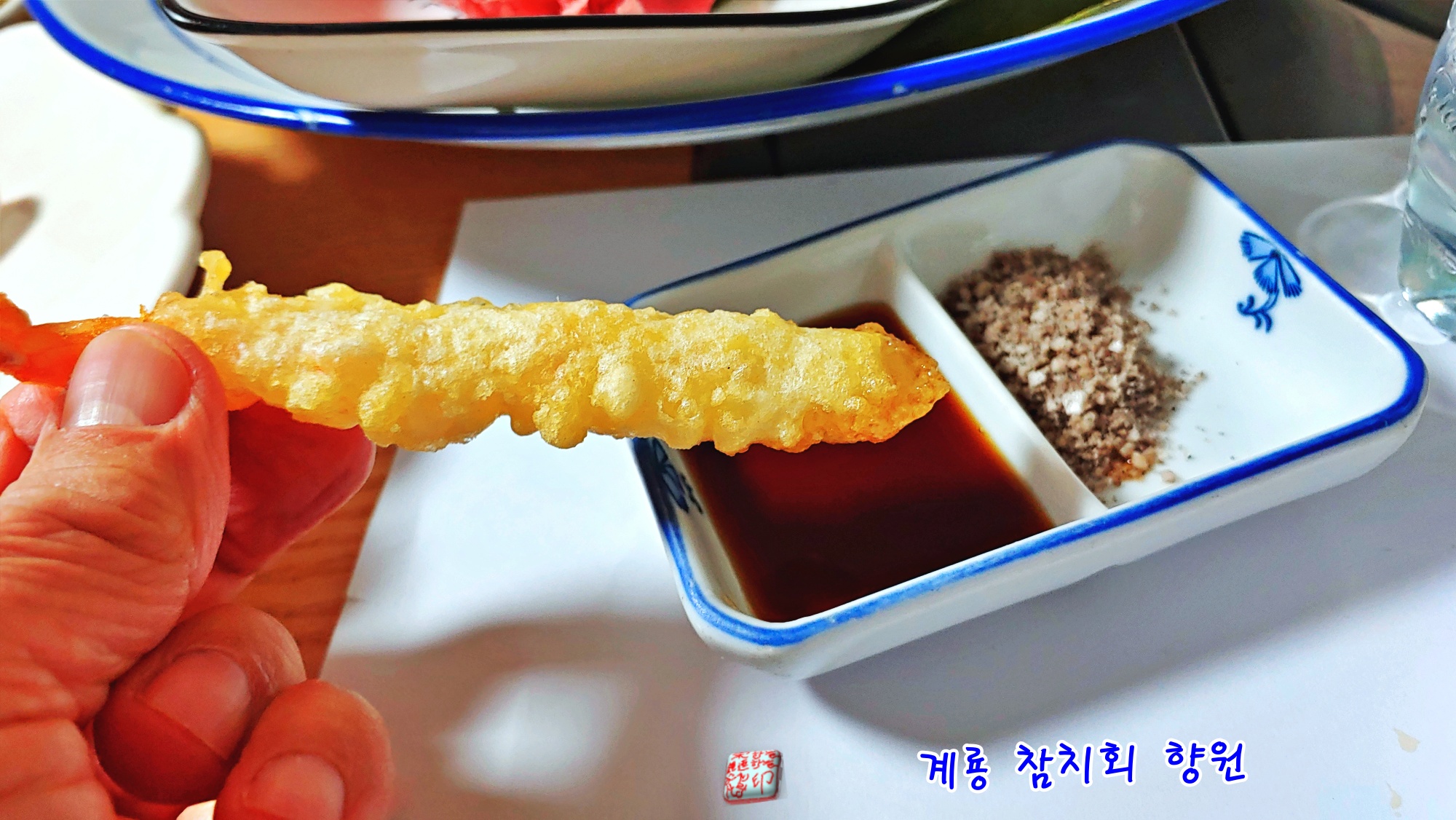 참치 주문에 추가로 나오는 새우튀김입니다.