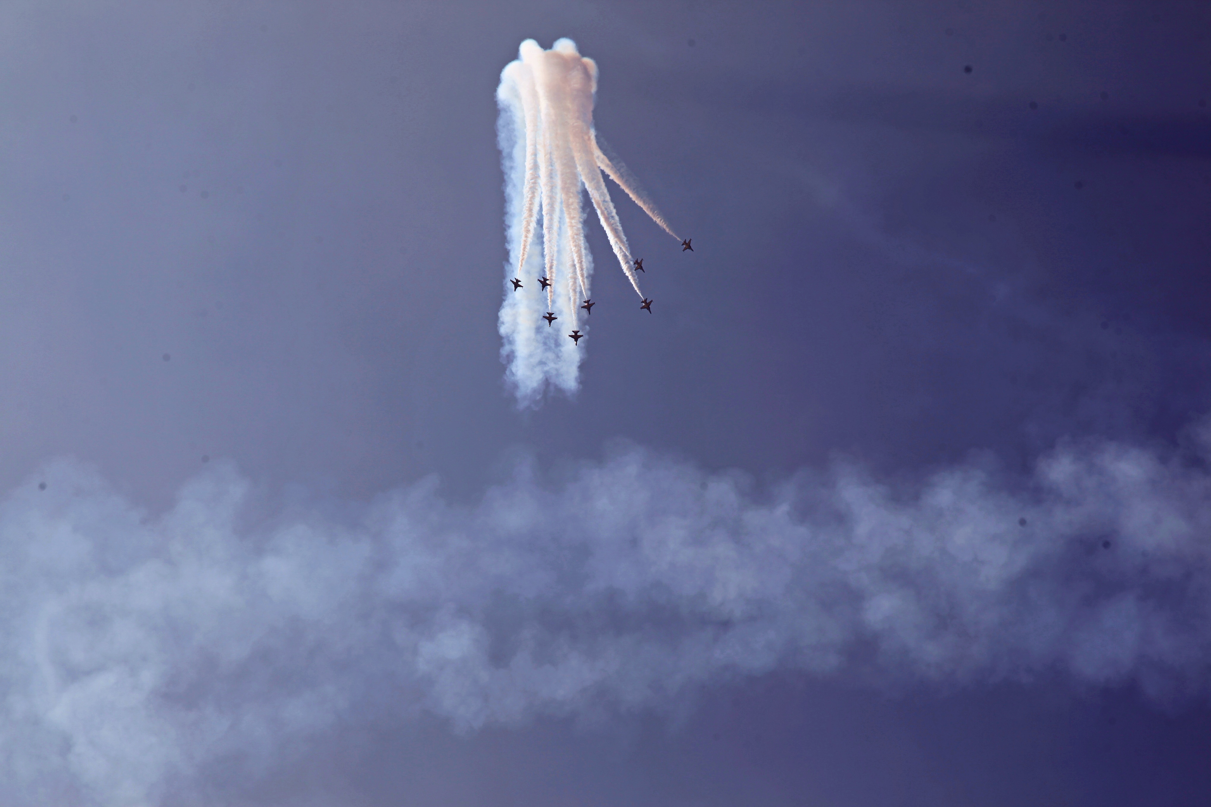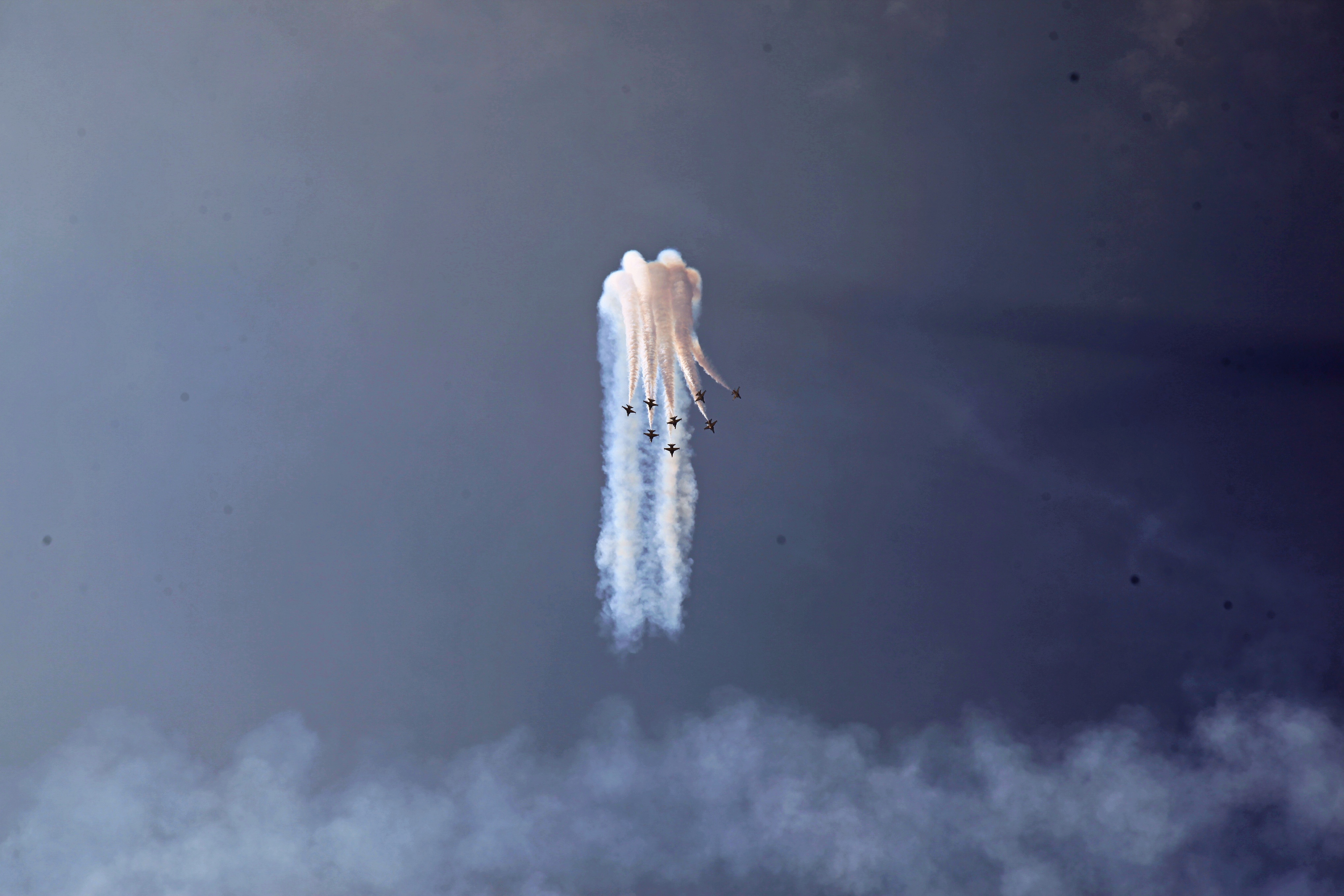 연막을 뿜으며 급상승한 블랙이글스 편대가