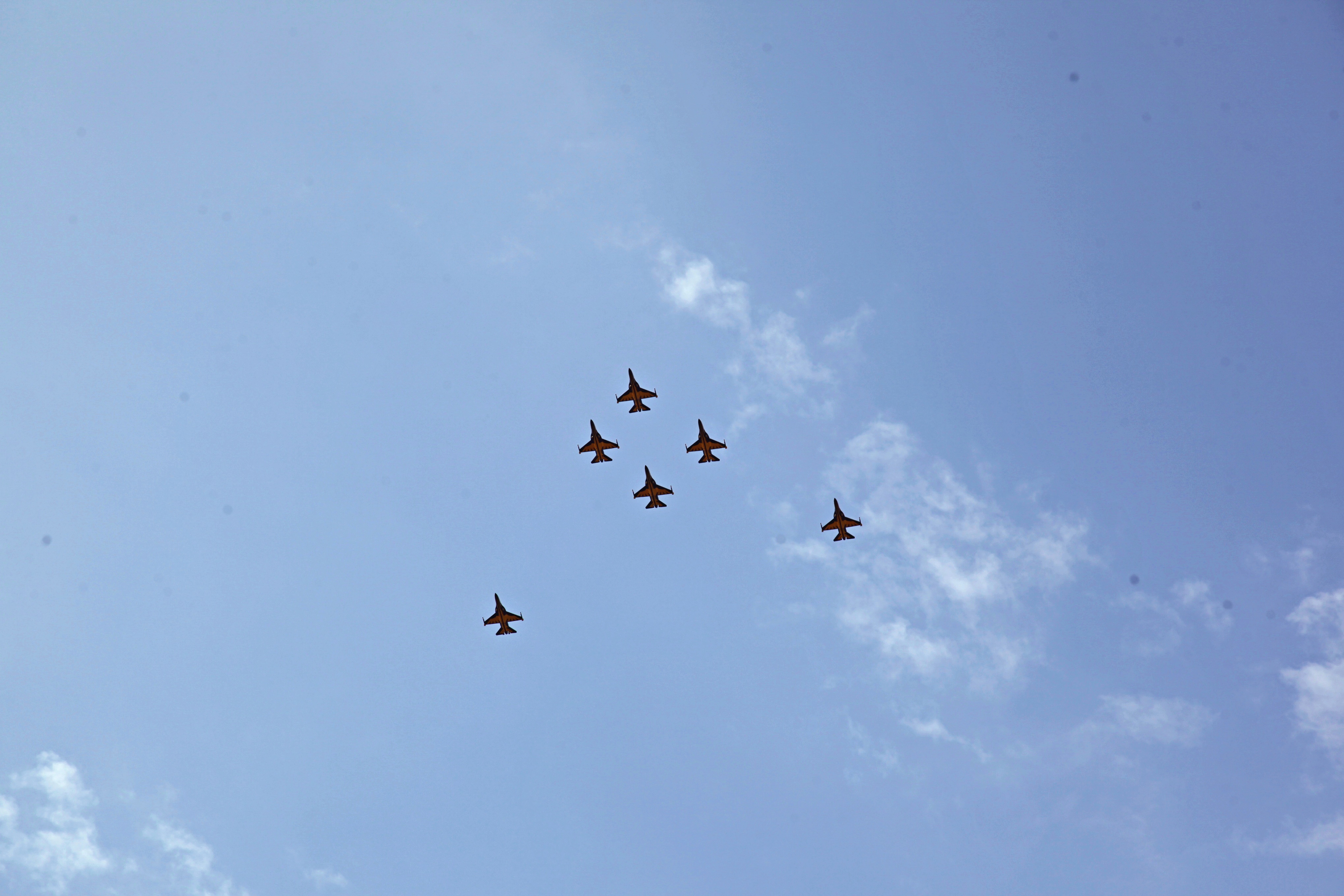 하늘에 국내 생산 비행기 블랙이글스가 등장합니다.