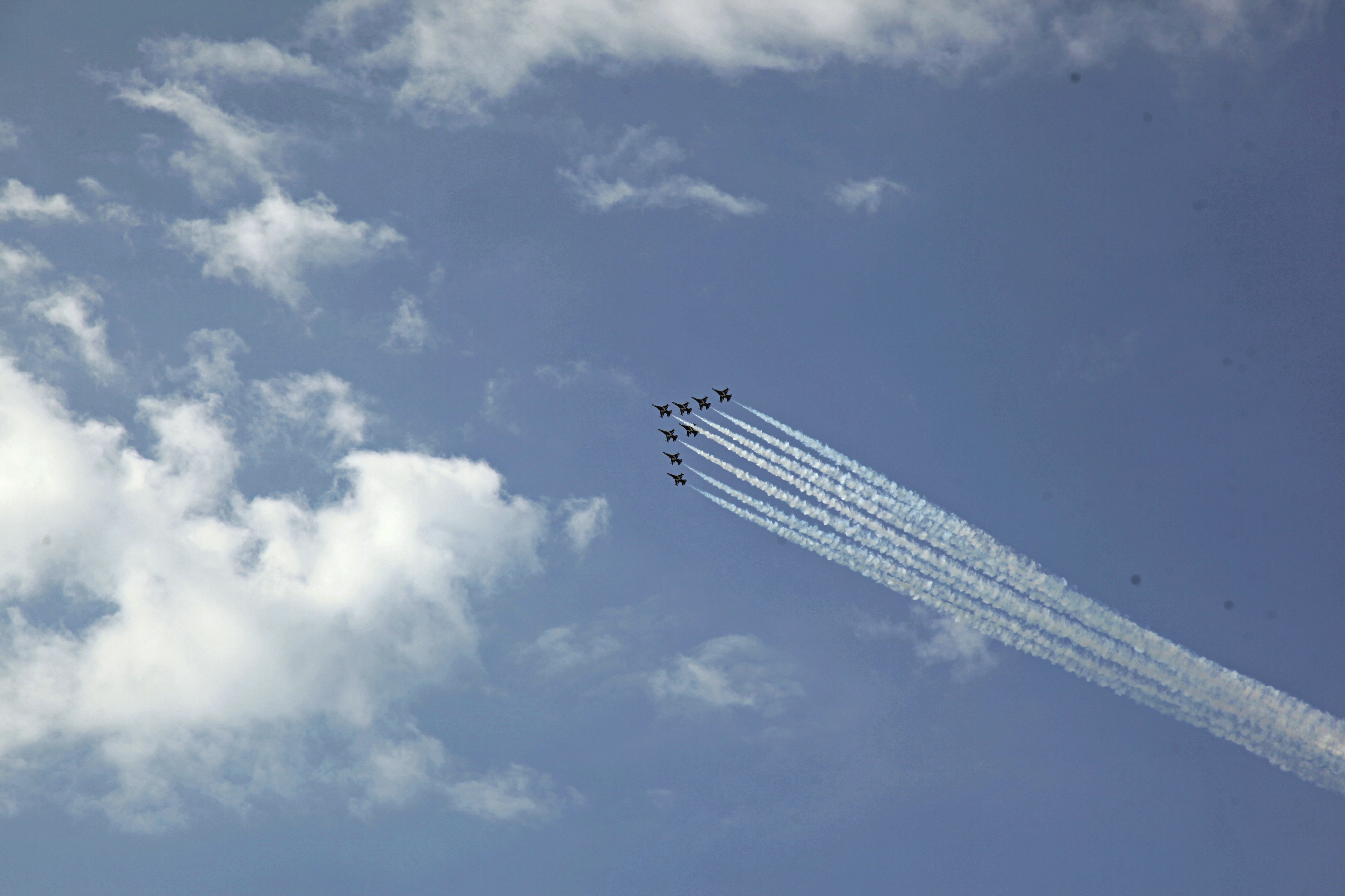 후방 5대는 연막을 뿌리며 하늘을 비행합니다.