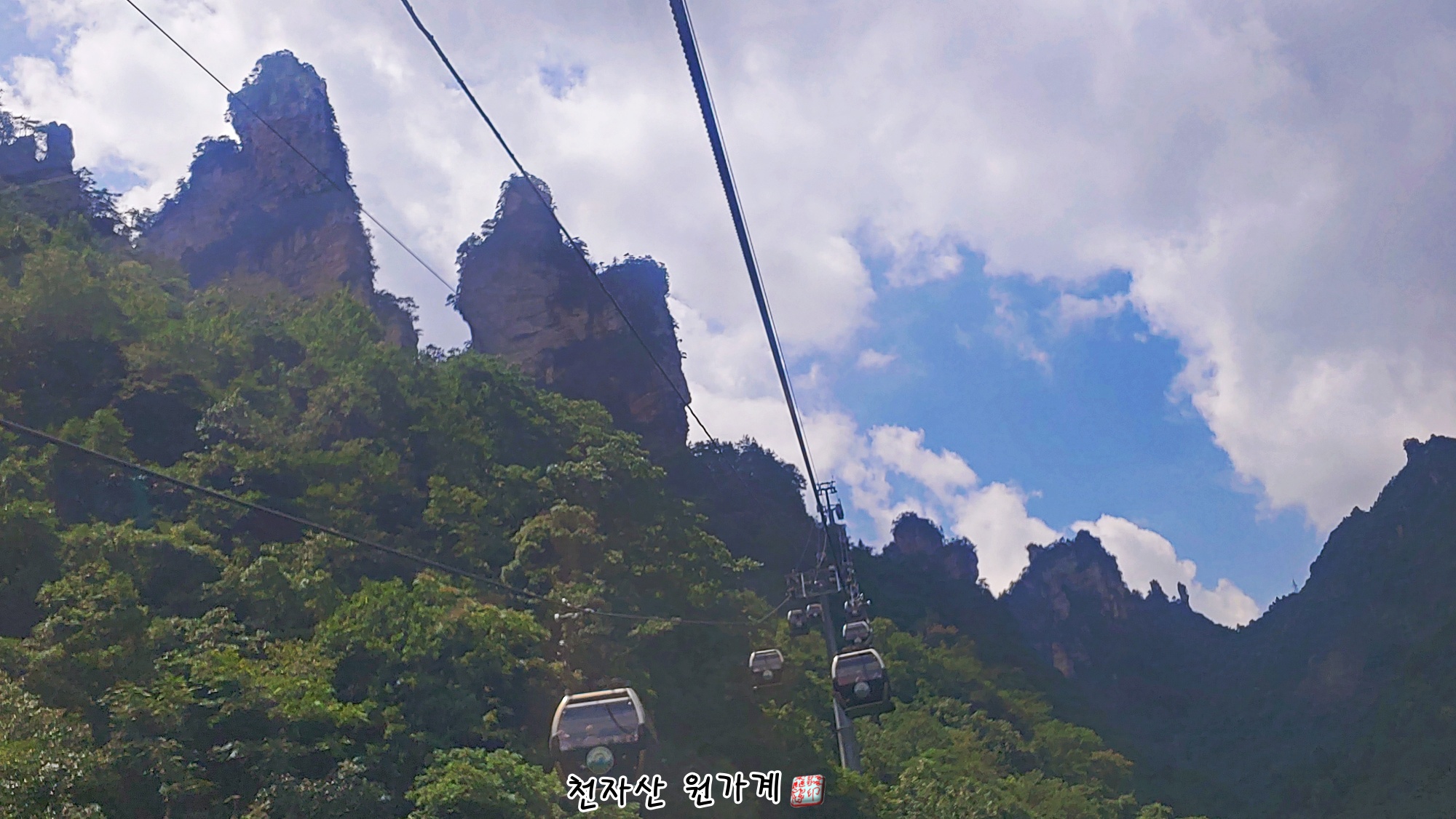천자산 오를 때 역시 살벌한 케이블카를 타고 이동합니다.