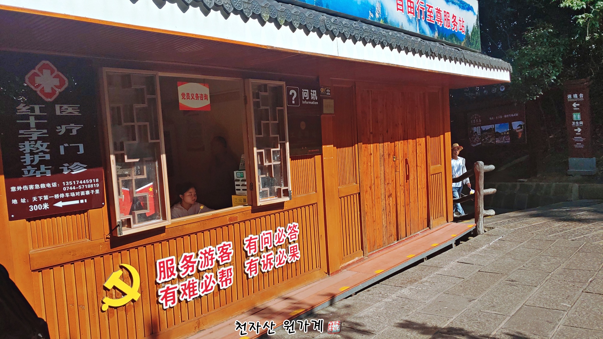 간판에는 "원가계 풍경구 가마탑승비용"이라는 한글도 있는데