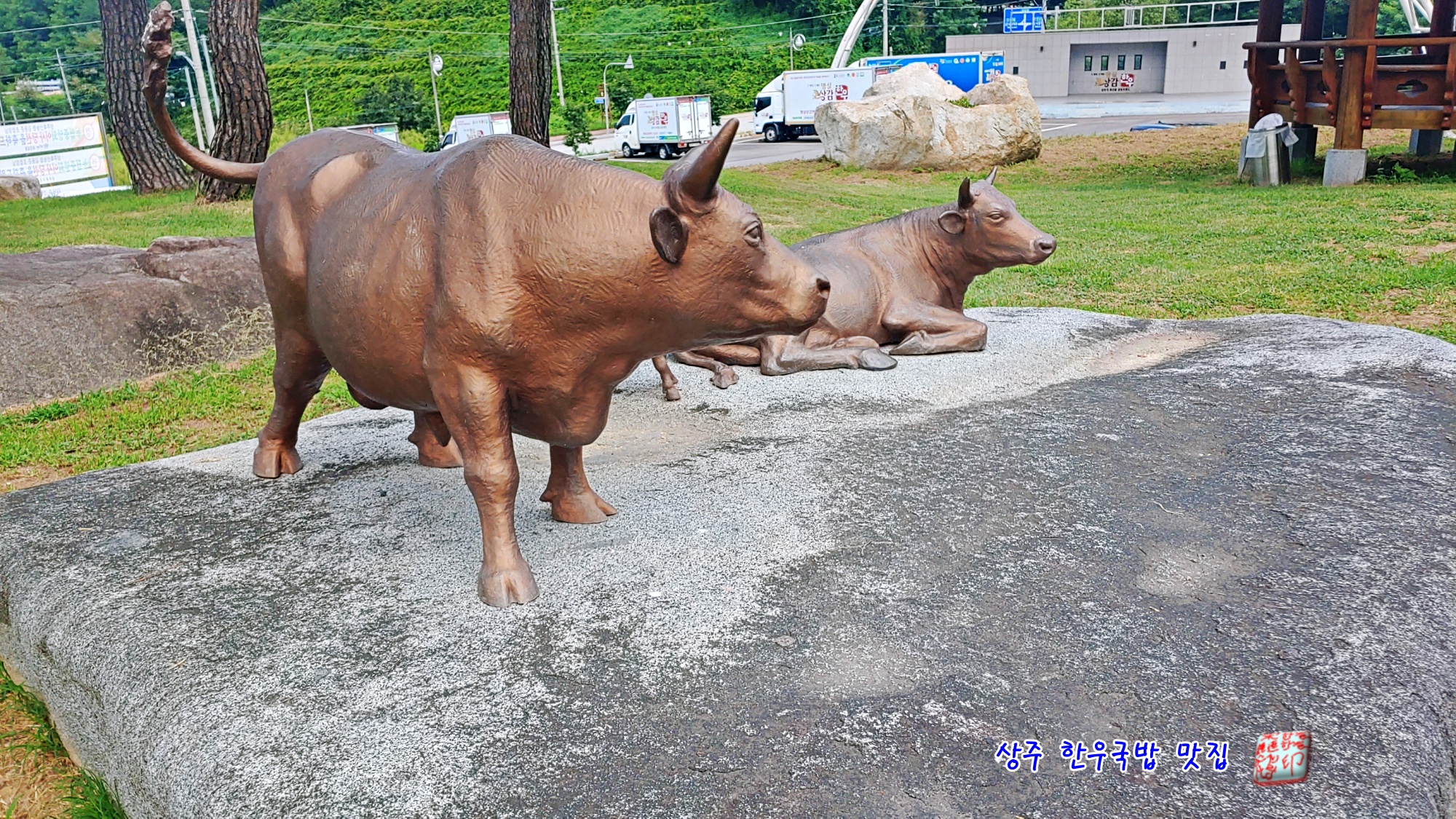 누런 황소 한우 상들이 큰 바위에 이렇게 자리하고 있으면서