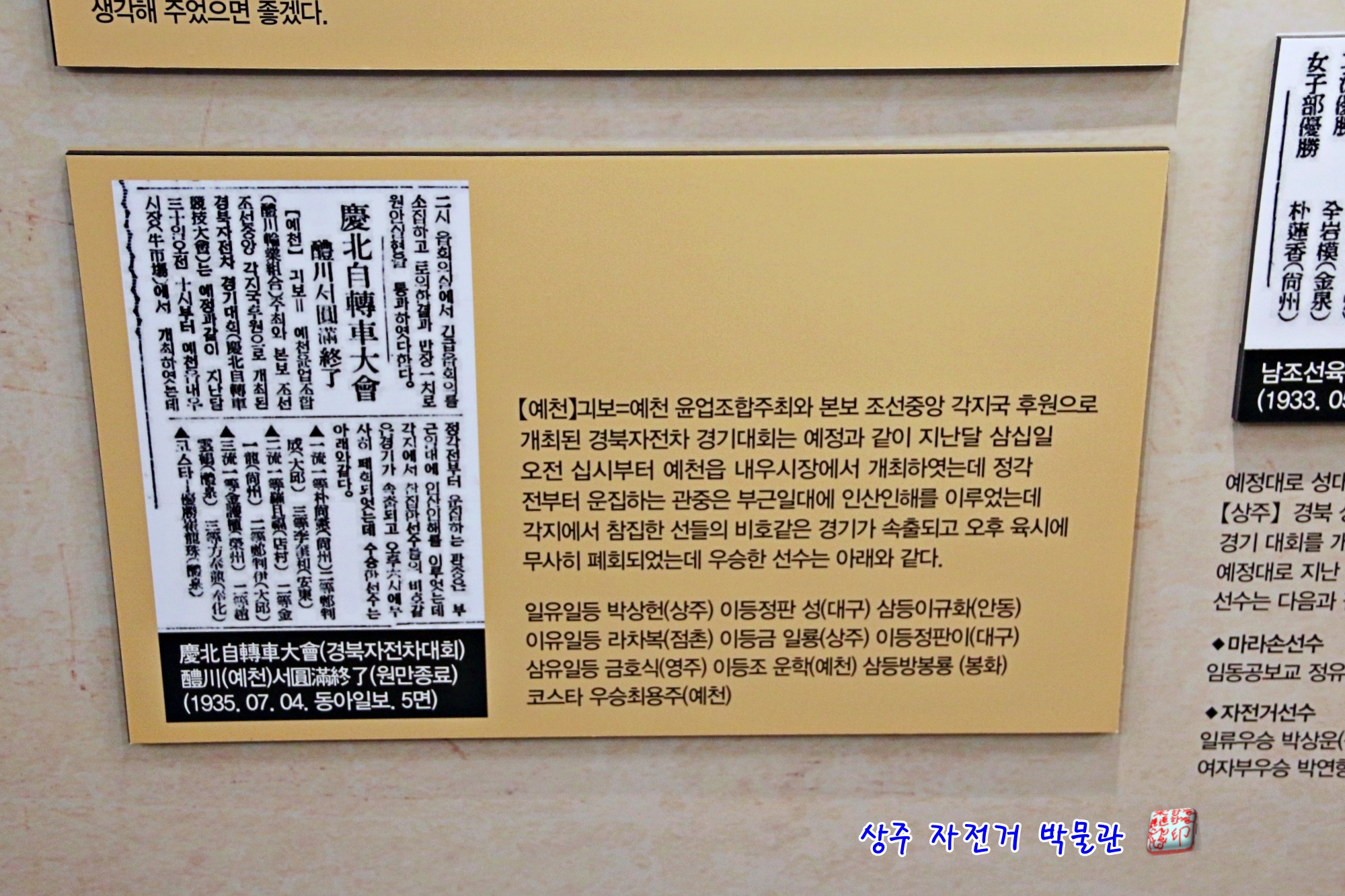 전시되어 있어, 당시의 상주의 자전거 산업에 대한 모습을 알 수 있습니다.