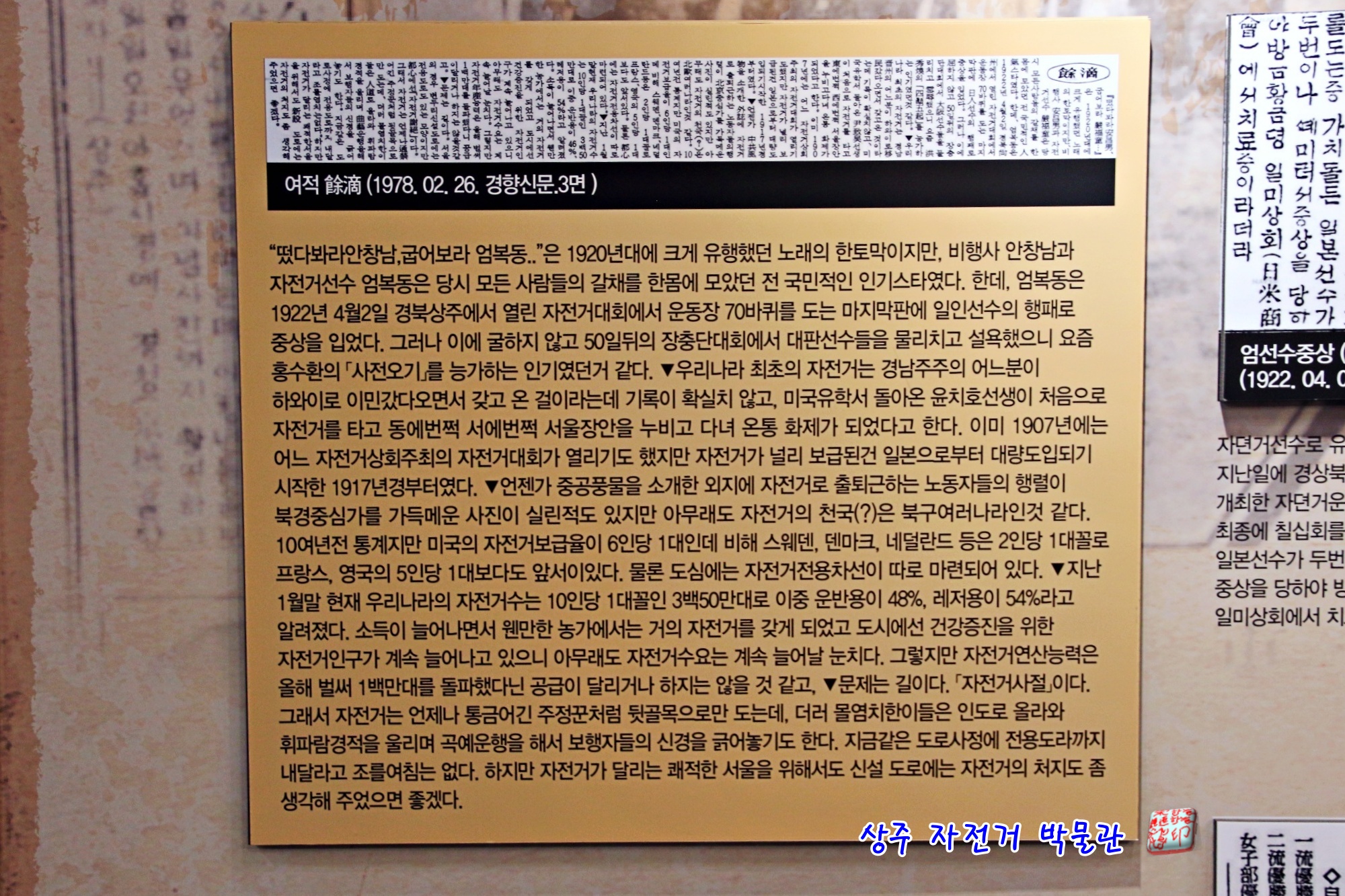 자전거 도시 상주의 자전거박물관 자료사진으로 약 3탄에 걸쳐