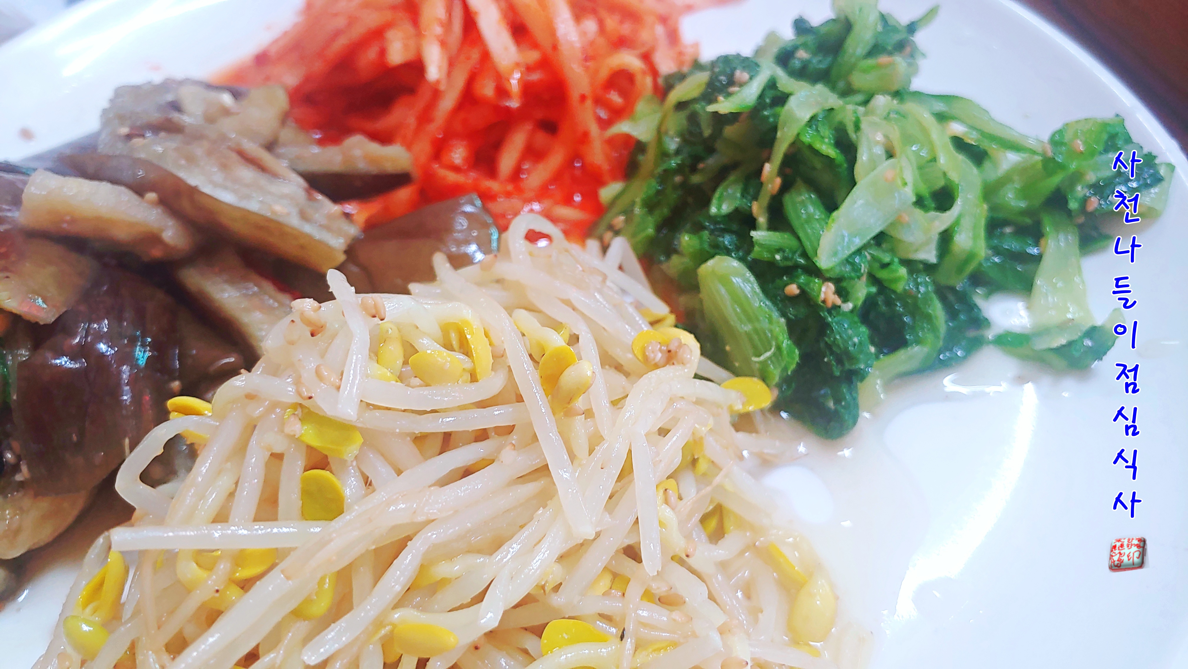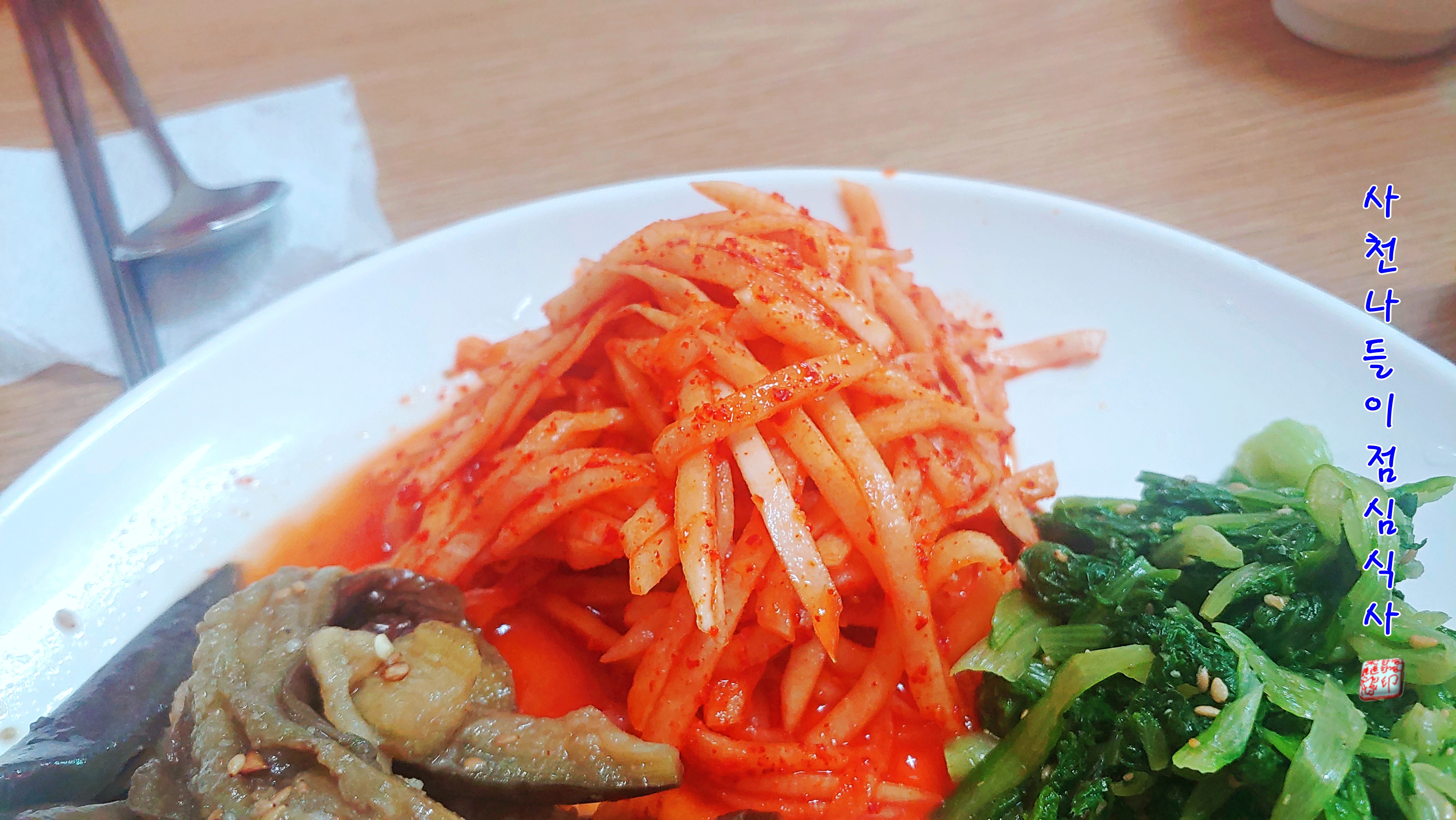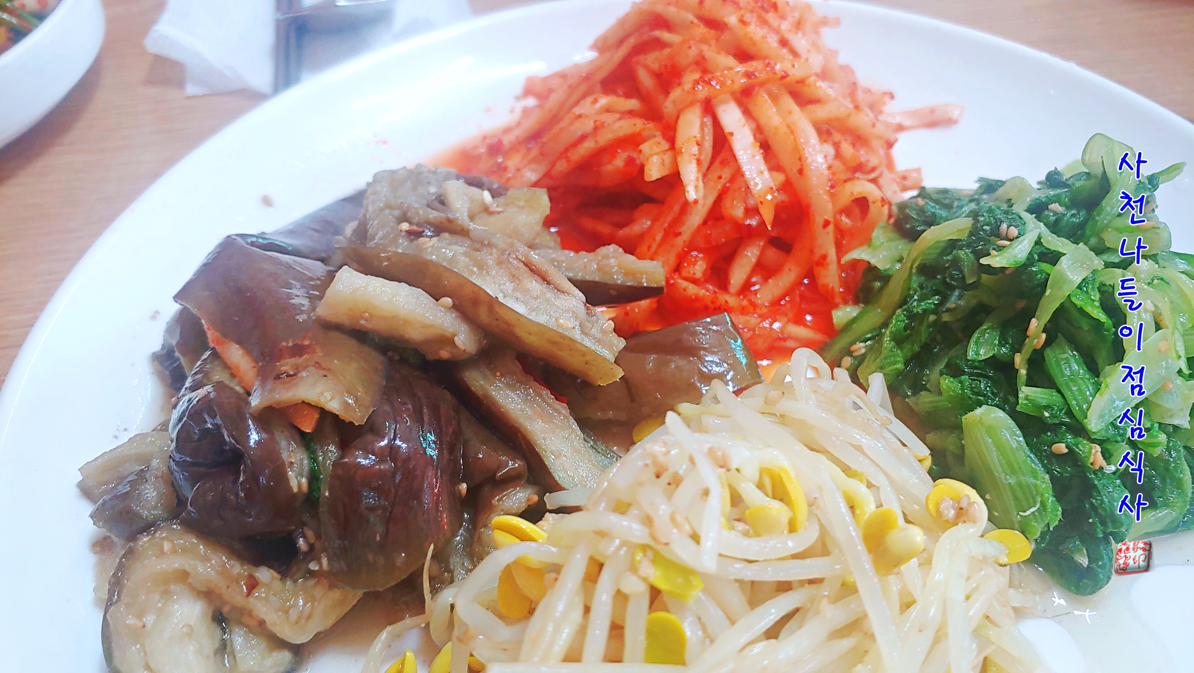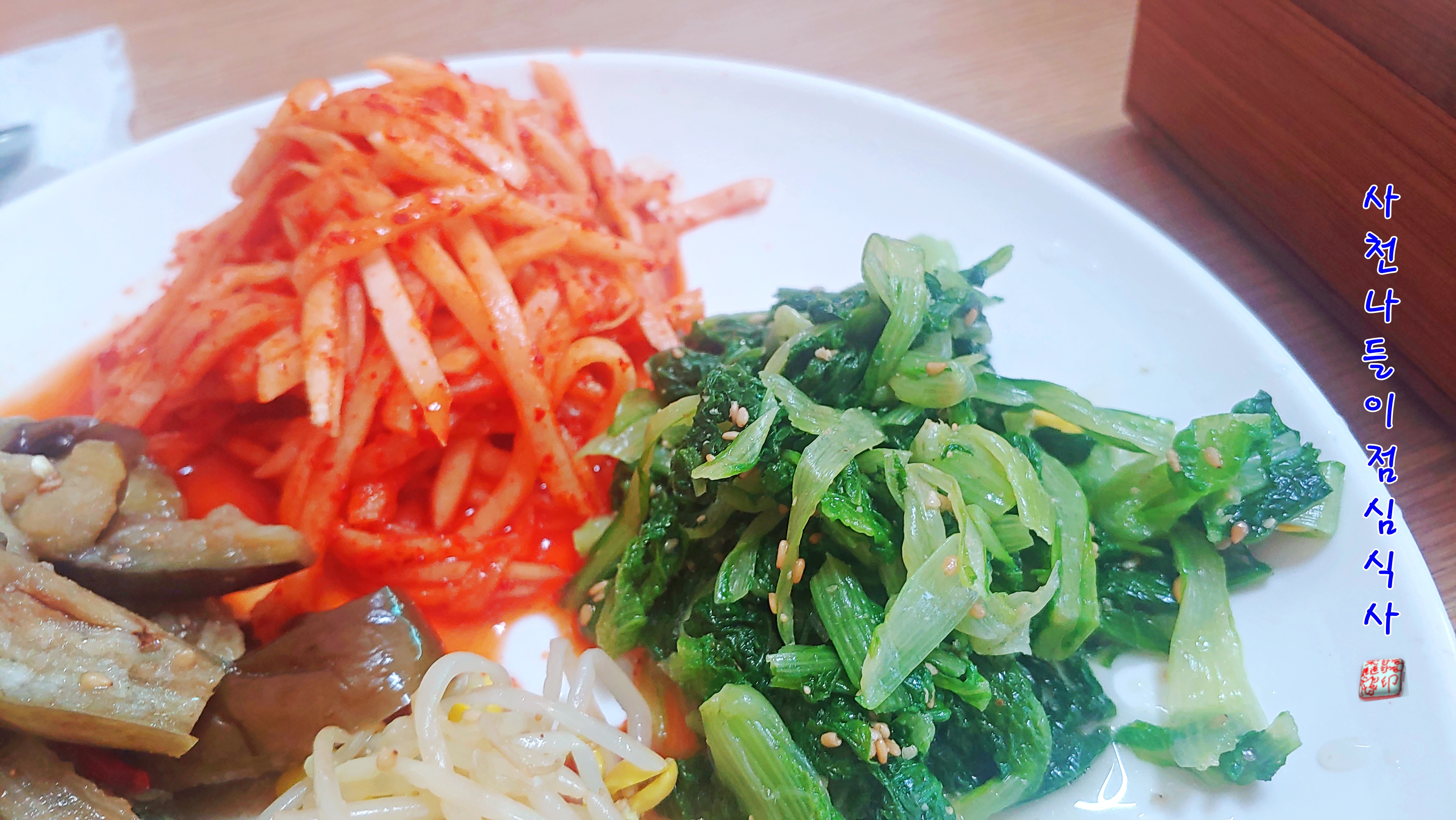 반찬은 큰 접시에 두 접시 담겨 나오고...