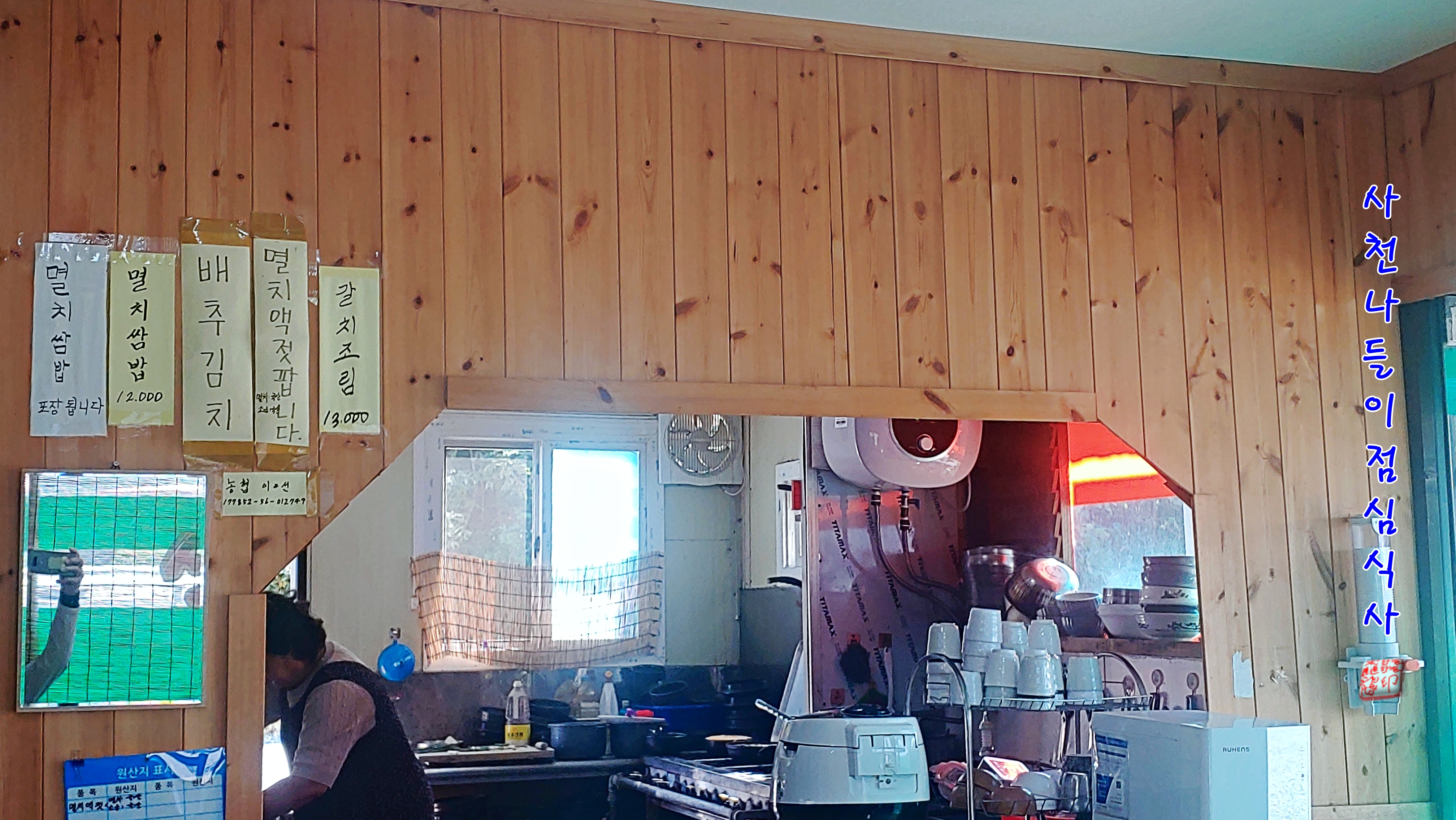 여러 메뉴가 있습니다.. 손글씨 매뉴판에 멸치 쌈밥이 있는데..
