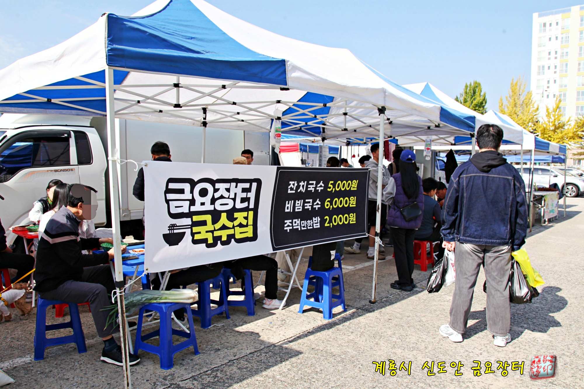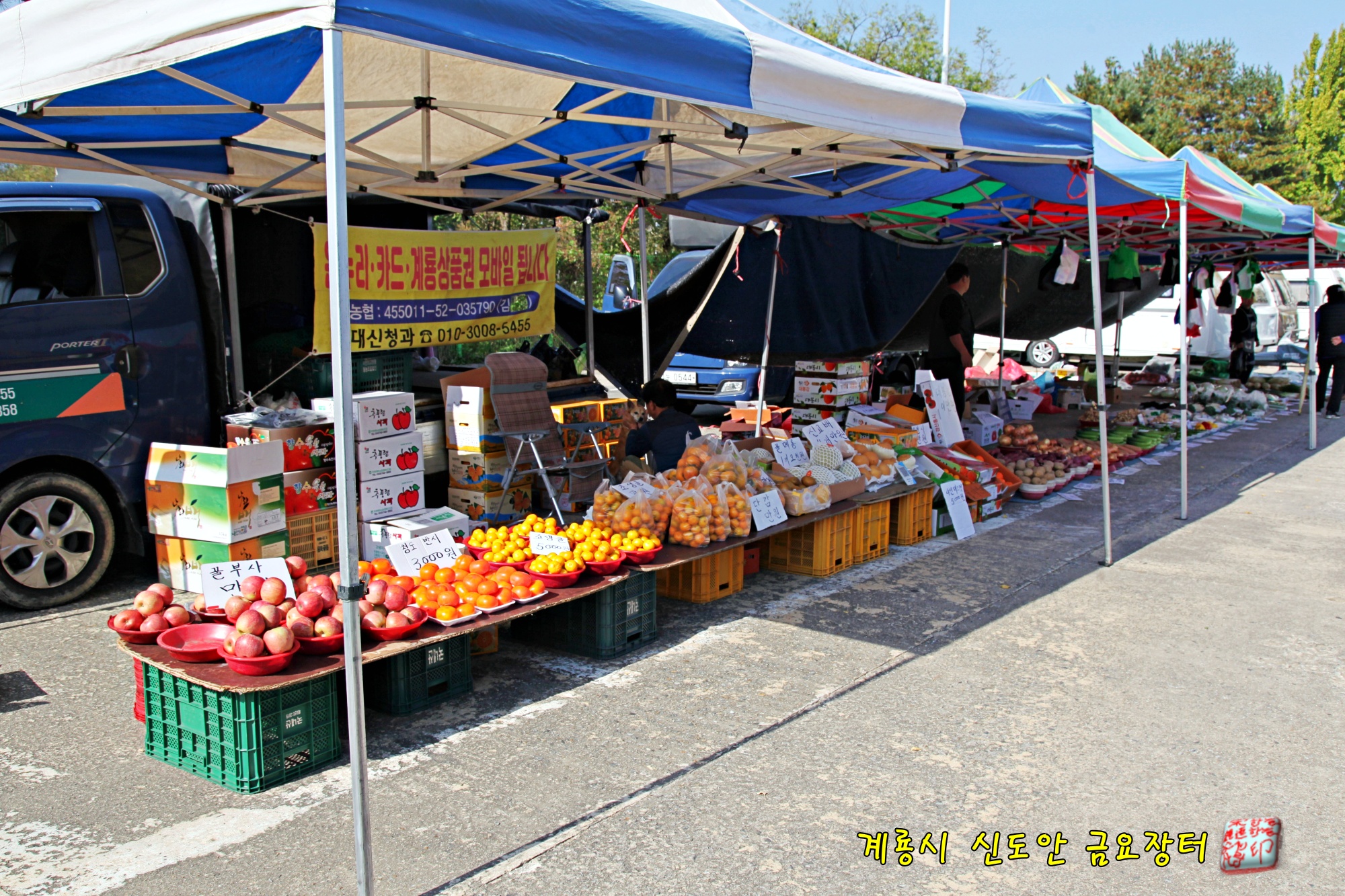 매주 금요일에 신도안 공용주차장에서 열립니다.