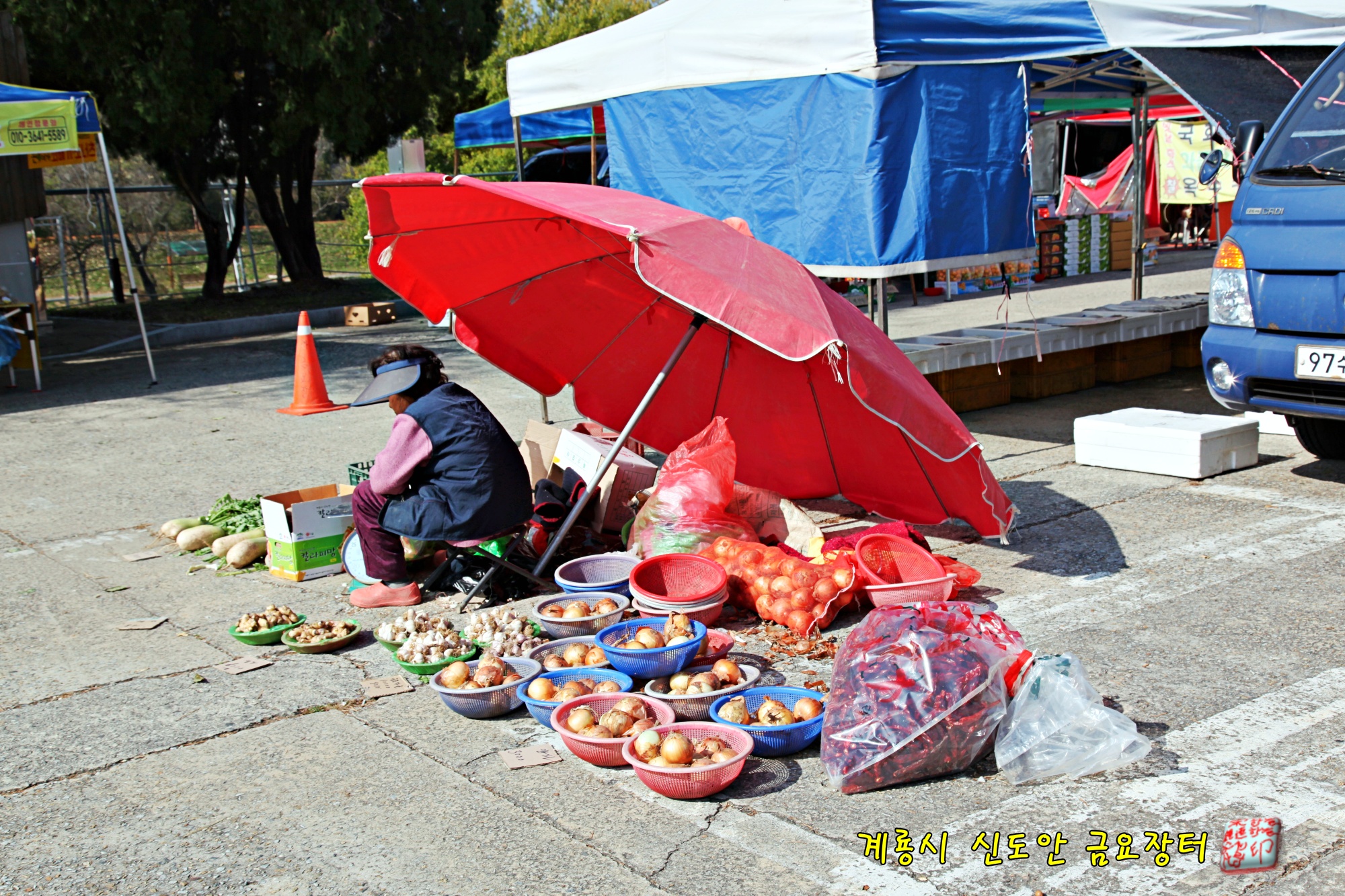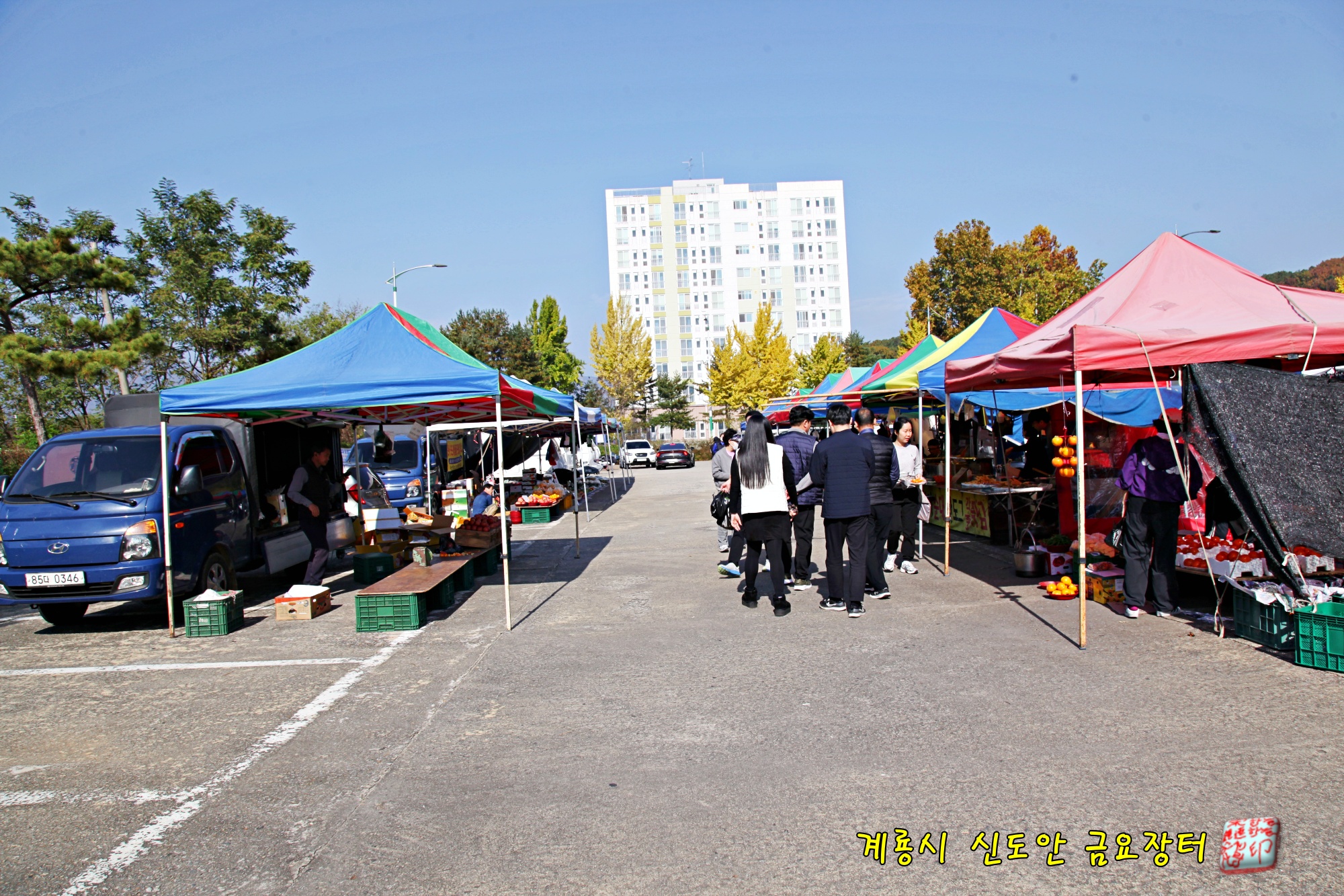 계룡시 신도안 공용주차장에서 매주 펼쳐지는 금요장터 풍경입니다.
