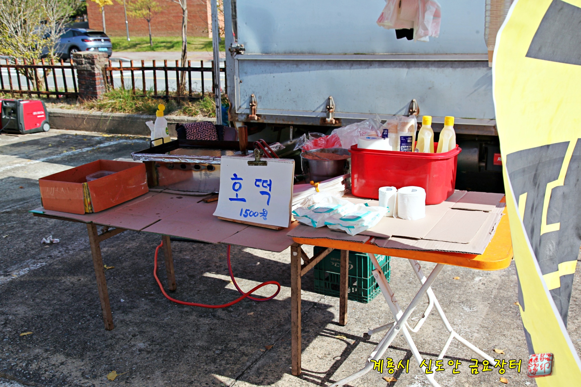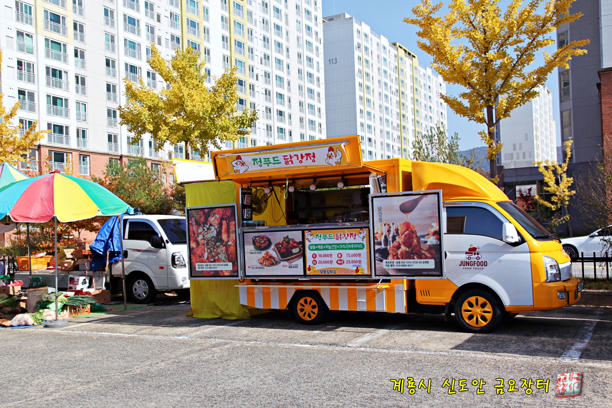 닭강정을 판매하는 푸드트럭도 손님을 기다리고 있습니다.