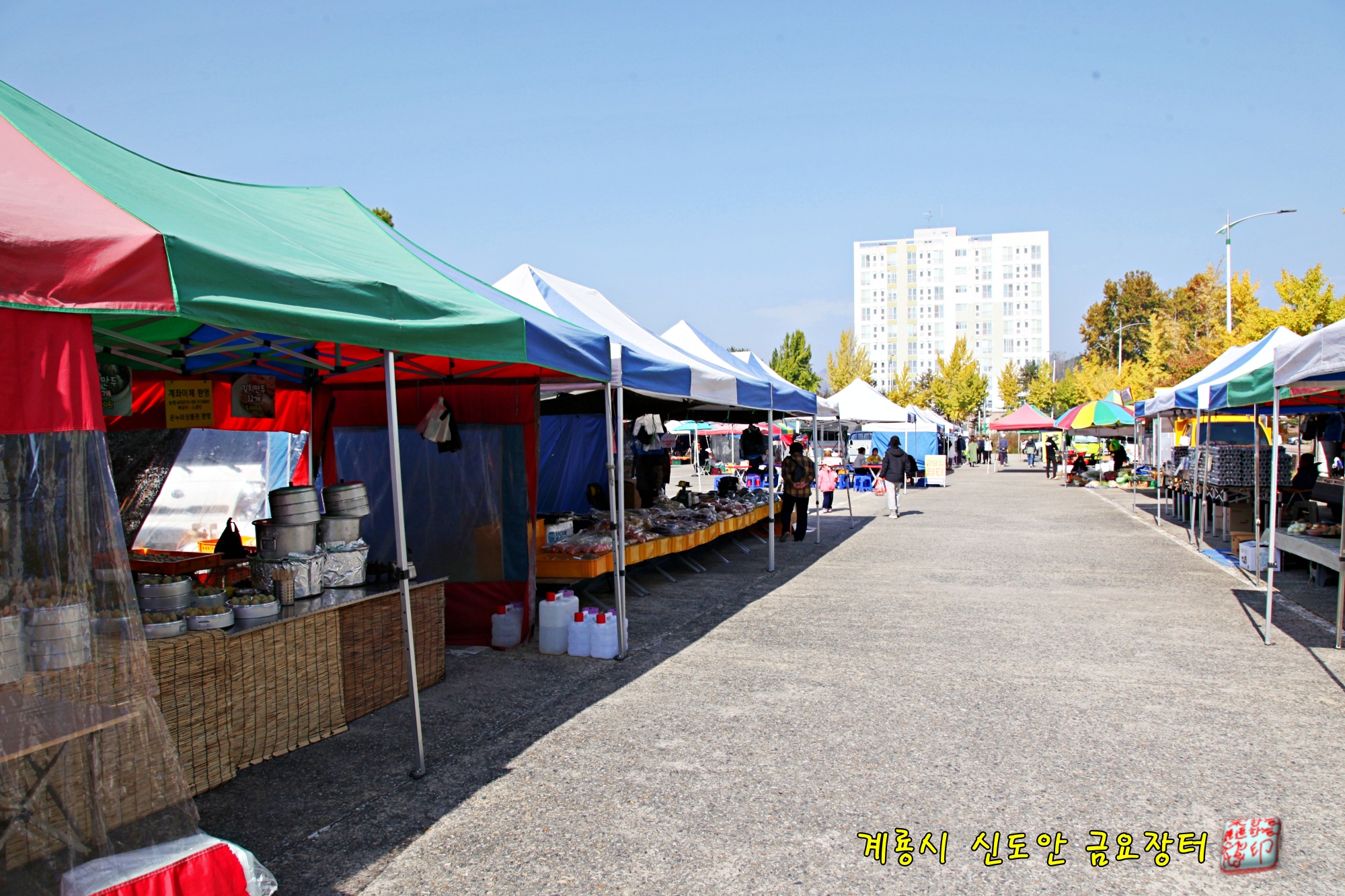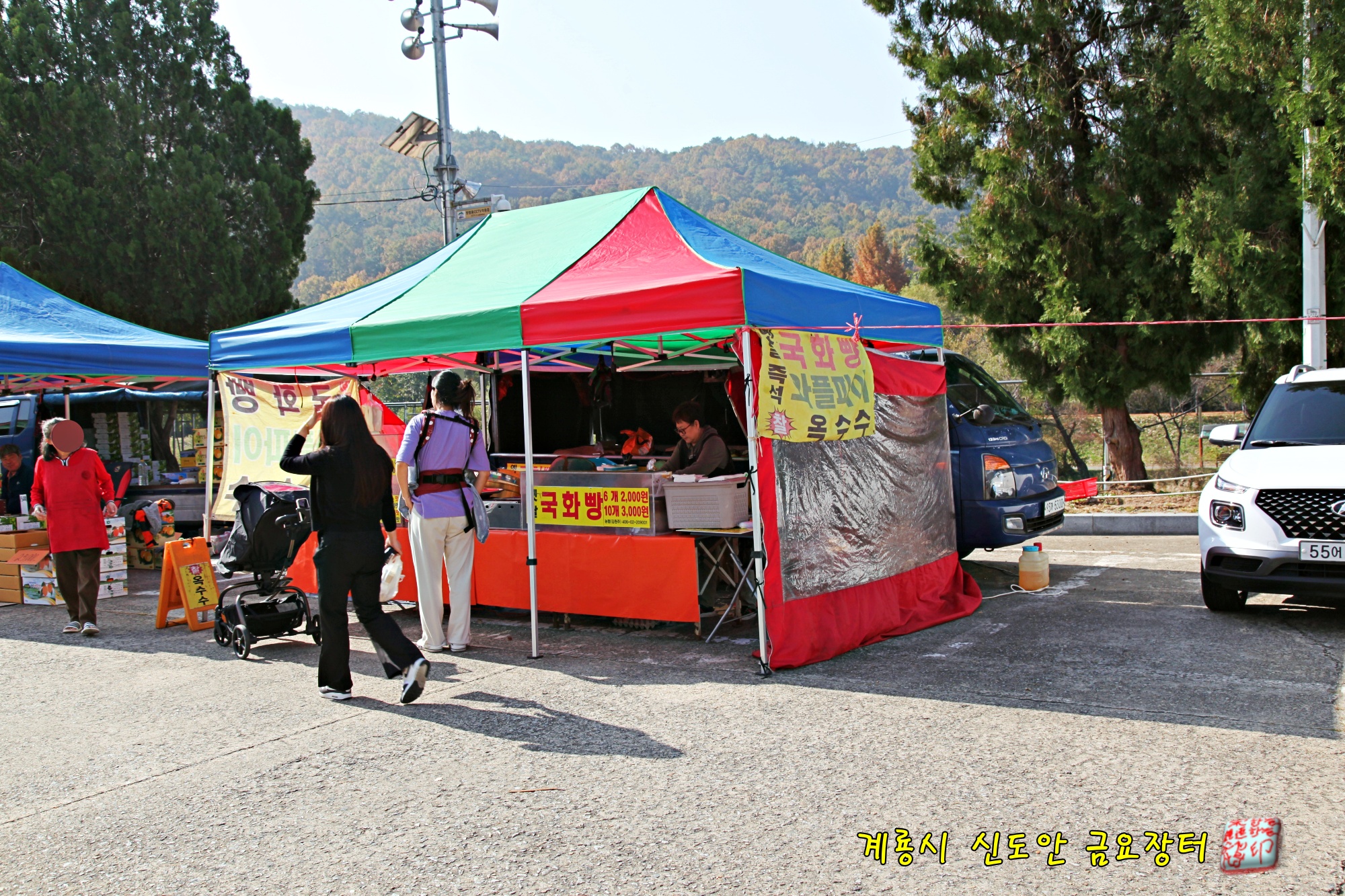 계룡시 신도안면 공용주차장에 매주 금요일 열리는 금요장터입니다.