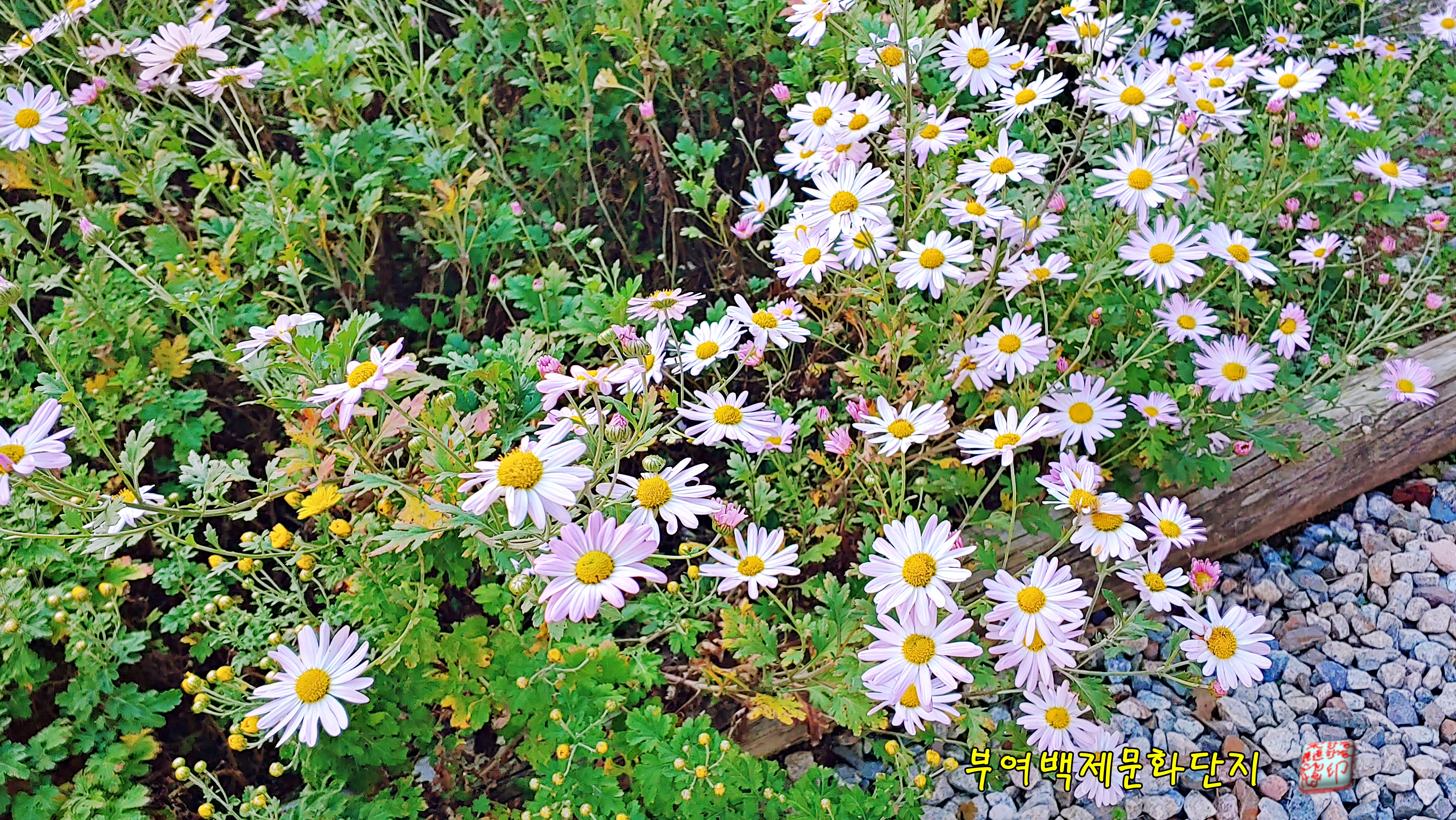 제향루 가는 계단 옆에는 가을꽃 국화인지,