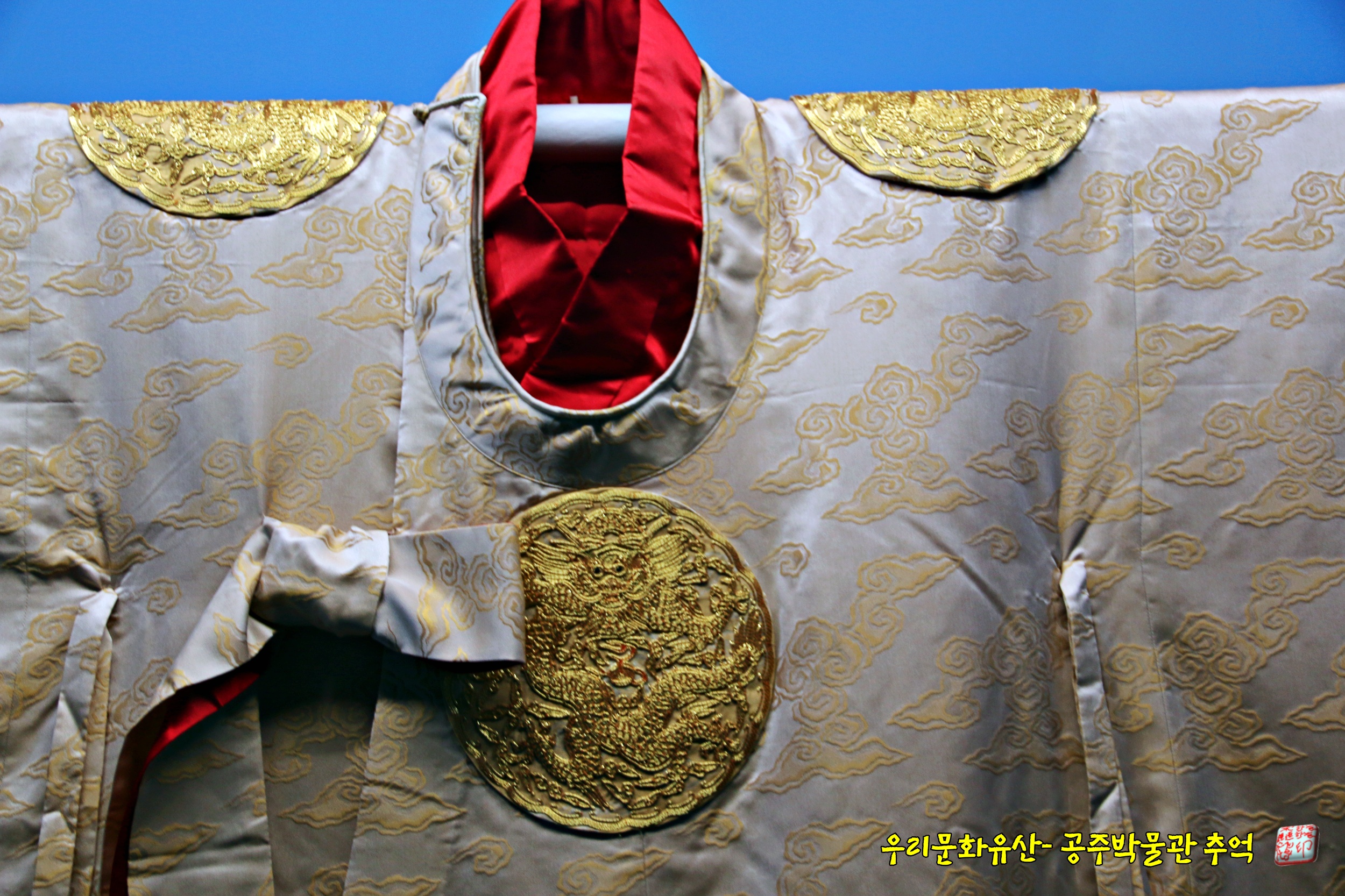 용무늬가 놓인 원형의 흉배가 가슴과 등에 달려 있습니다.