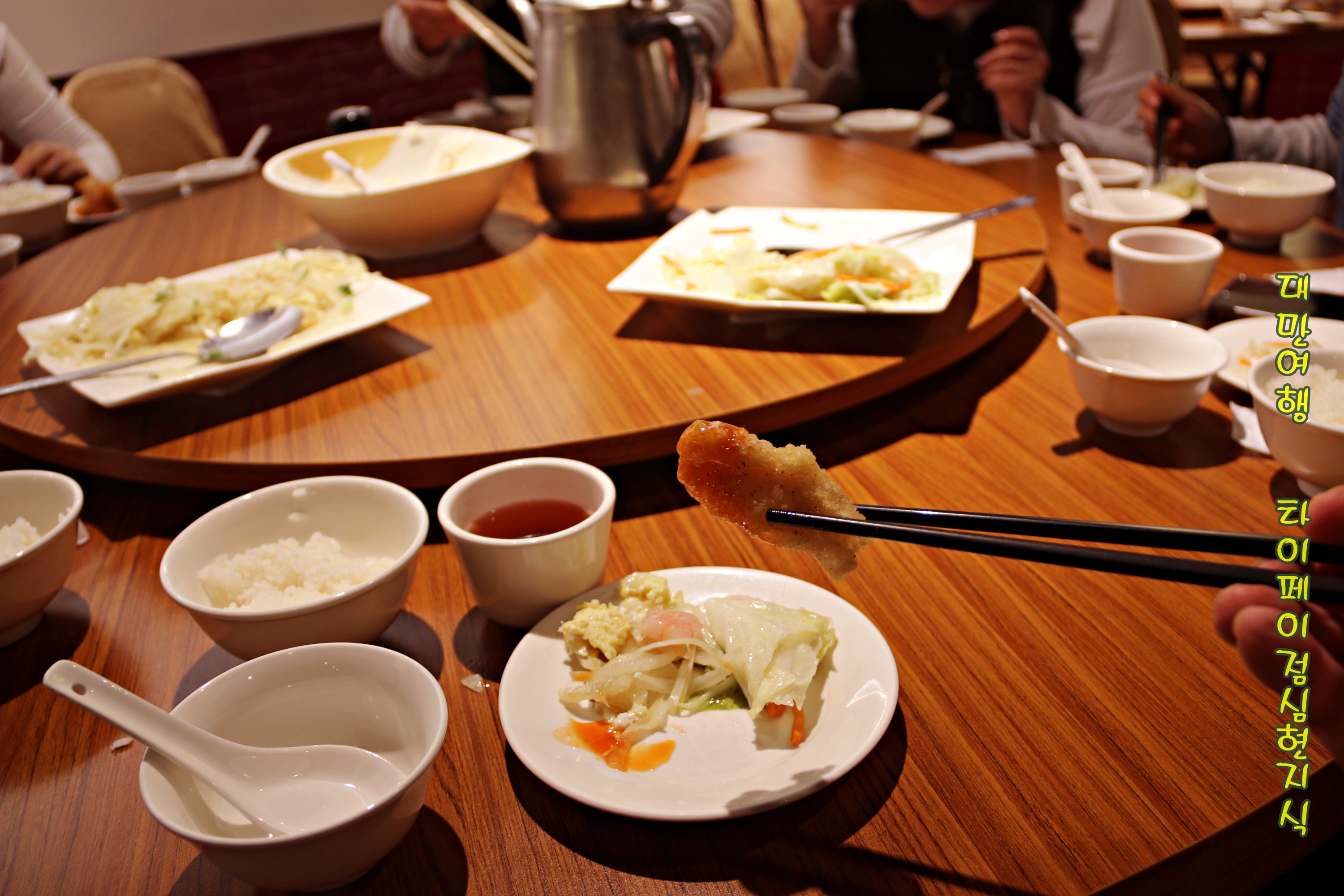 타이베이 시내 중화루에서 17인의 패키지여행객들 현지식으로 식사하고