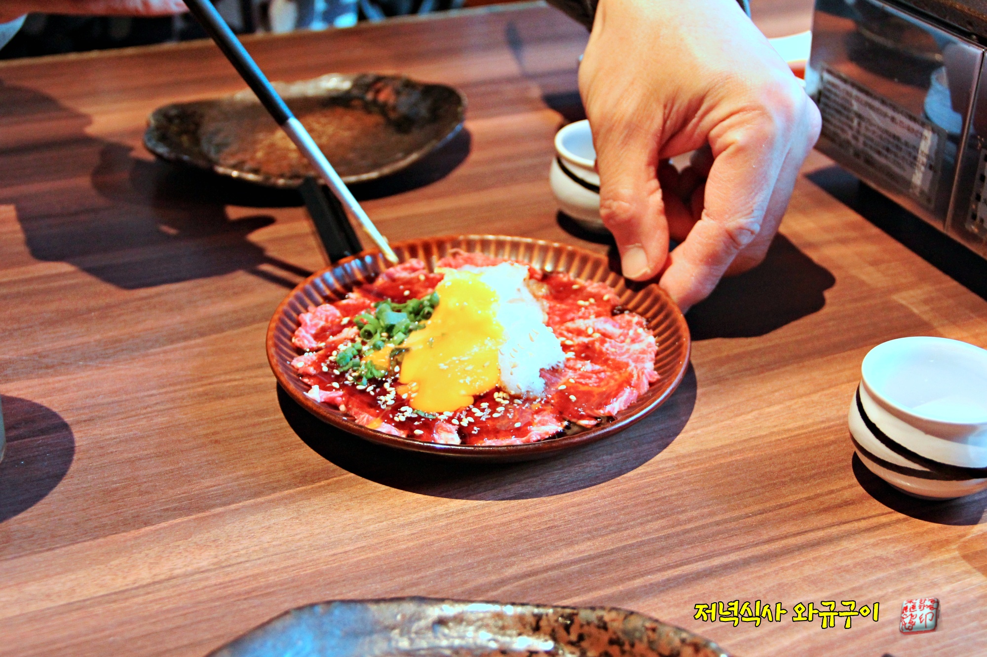 구워 먹는 고기와 육회를 주문하였는데 육회가 먼저 나옵니다.