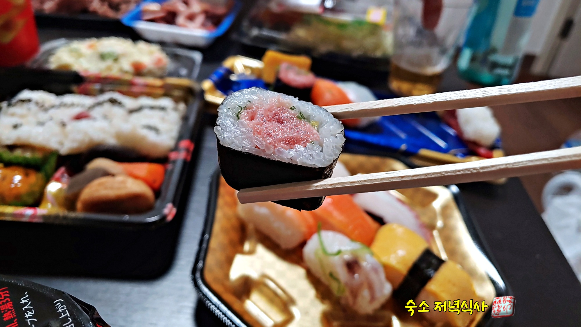 주문하는 것도 어렵고 하니 이렇게 포장된 도시락 및 초밥을 사서