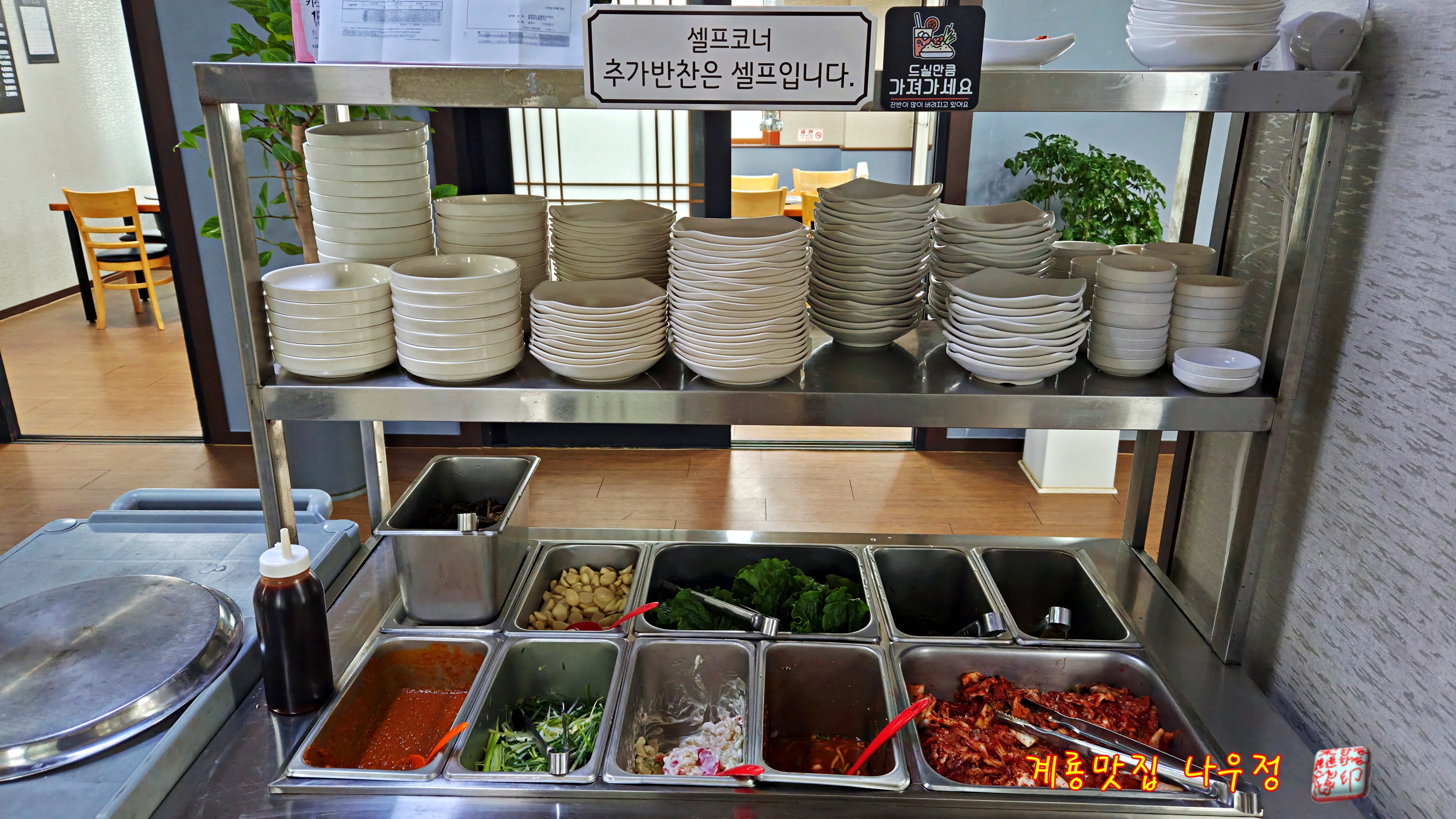 이렇게 차려진 기본 반찬은 셀프코너에서 마음껏 갖다 먹을 수 있습니다.